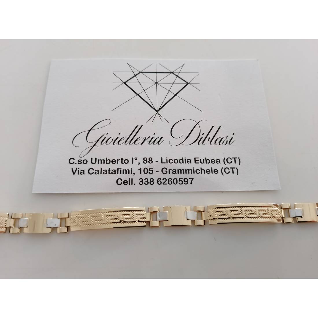 BRACCIALE ORO 18 Karati 750% Uomo Donna Bicolore GIALLO BIANCO Maglia Con Greche