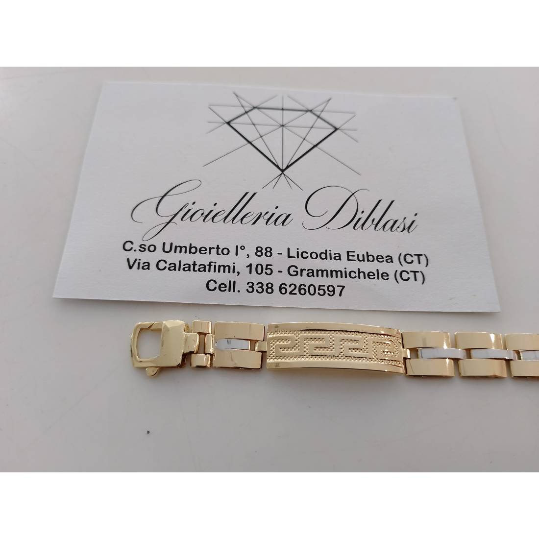 BRACCIALE ORO 18 Karati 750% Uomo Donna Bicolore GIALLO BIANCO Maglia Con Greche