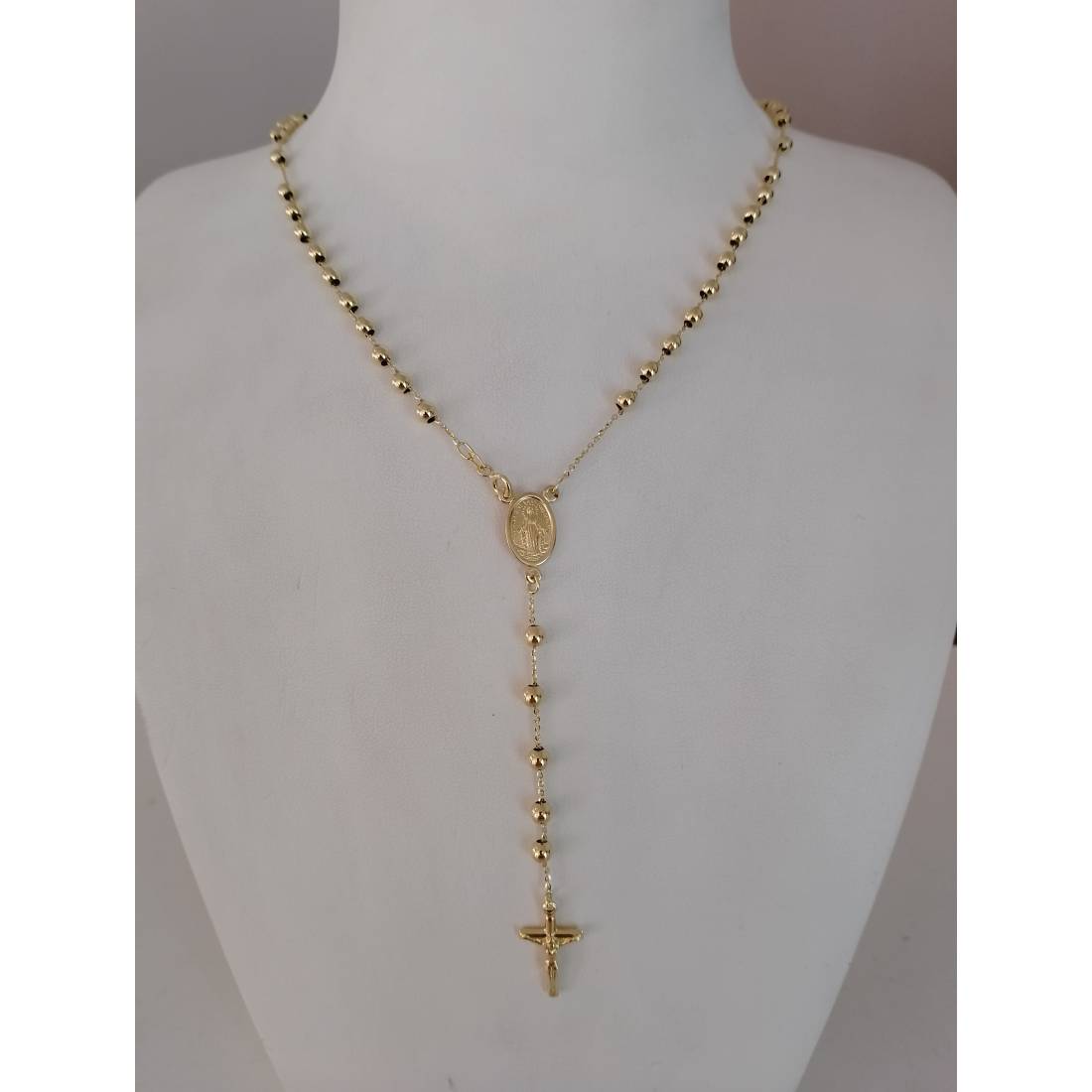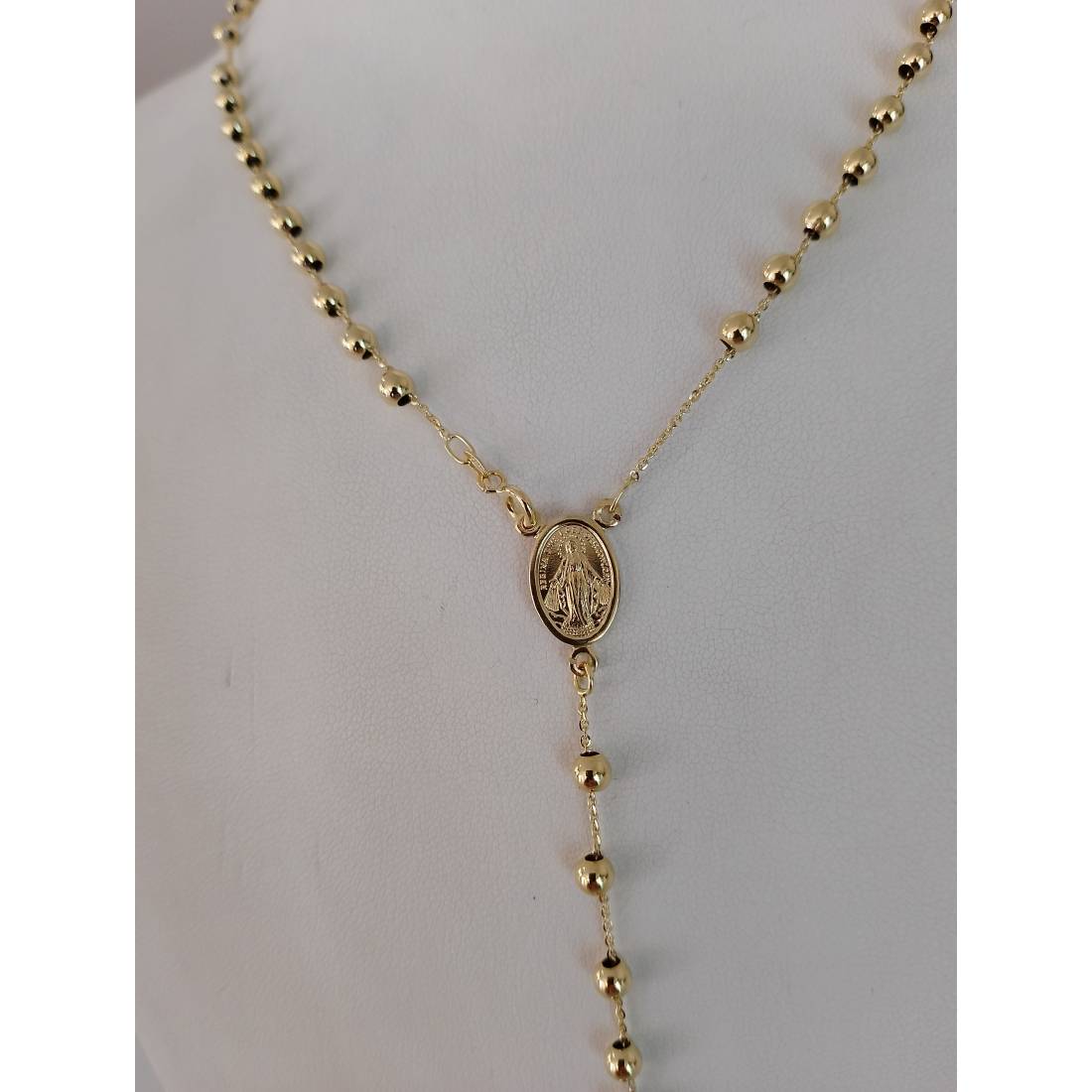 COLLANA ROSARIO ORO GIALLO 750 18K UNISEX Medaglia Miracolosa Croce SFERE LUCIDE