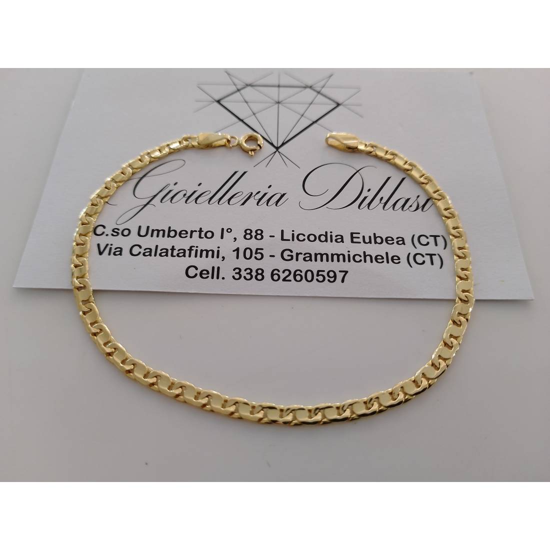 BRACCIALE In ORO GIALLO 18 Karati 750% Maglia Catena Piatta Lucida Uomo Donna