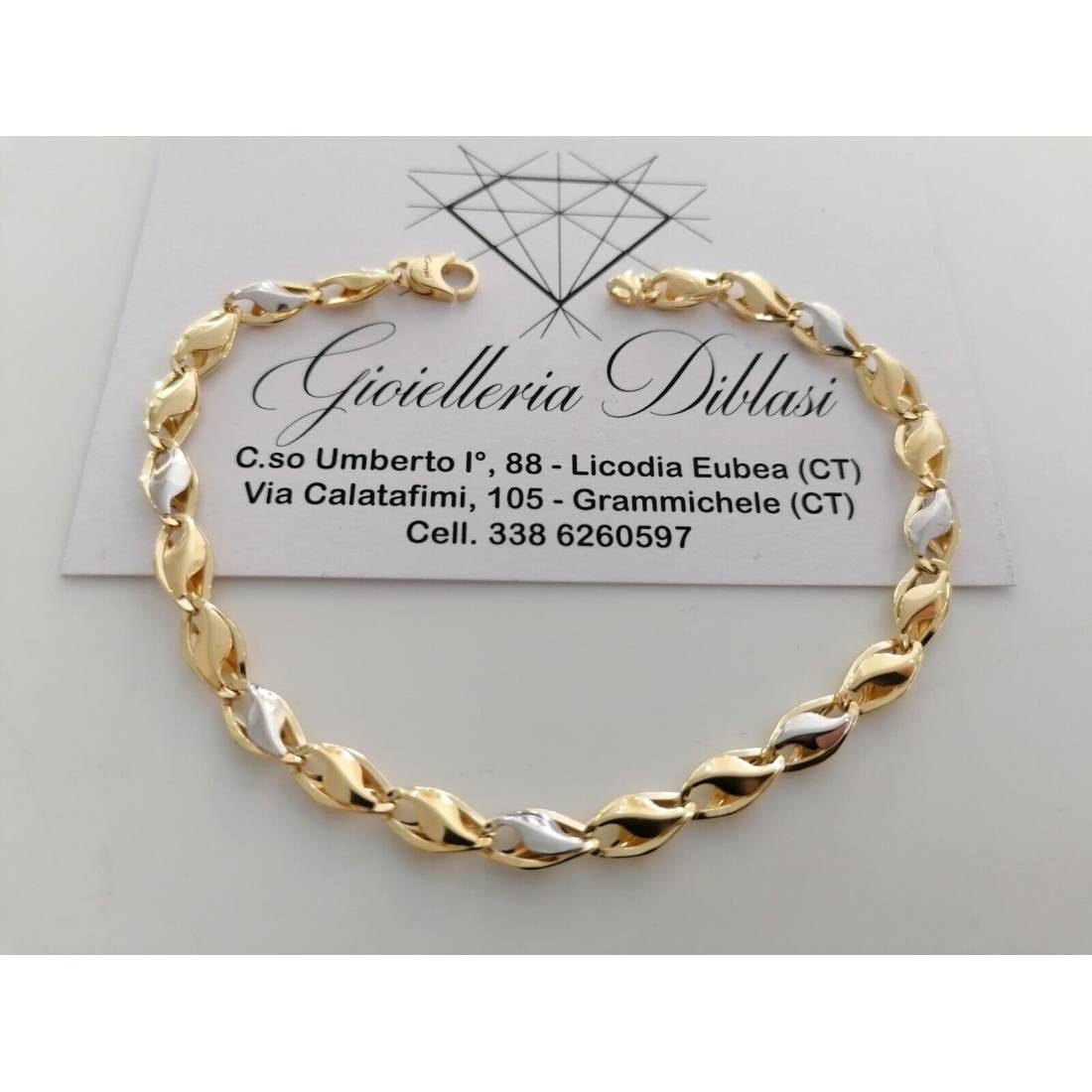 BRACCIALE ORO Bicolore GIALLO BIANCO 18 Kt 750% Uomo Donna Unisex Maglia Catena
