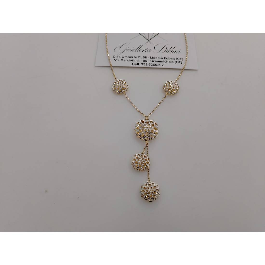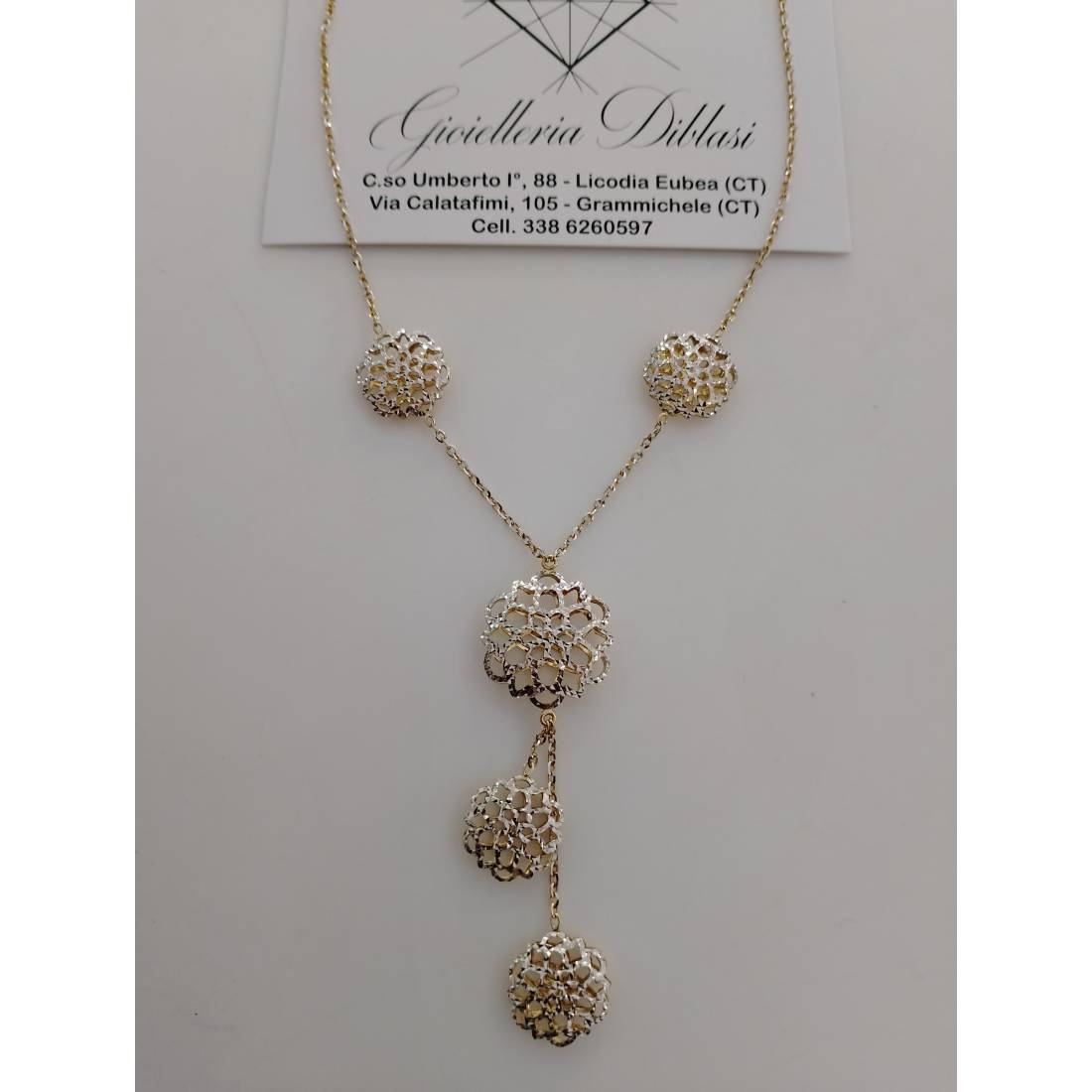 COLLANA Donna ORO Bicolore GIALLO BIANCO 18 Karati 750% CON PENDENTE Diamantato