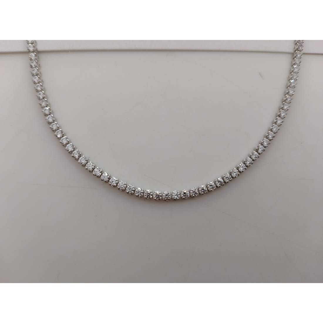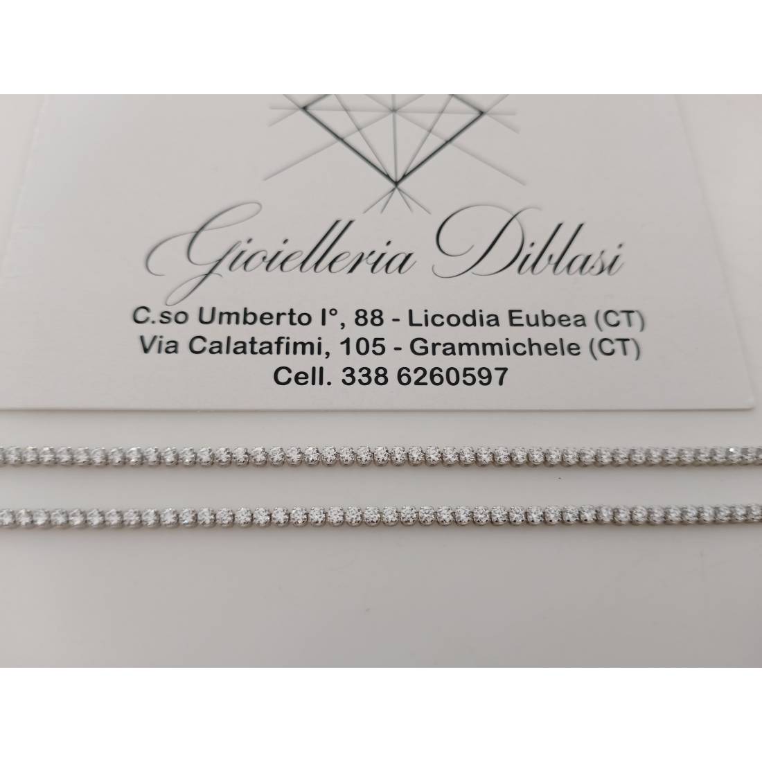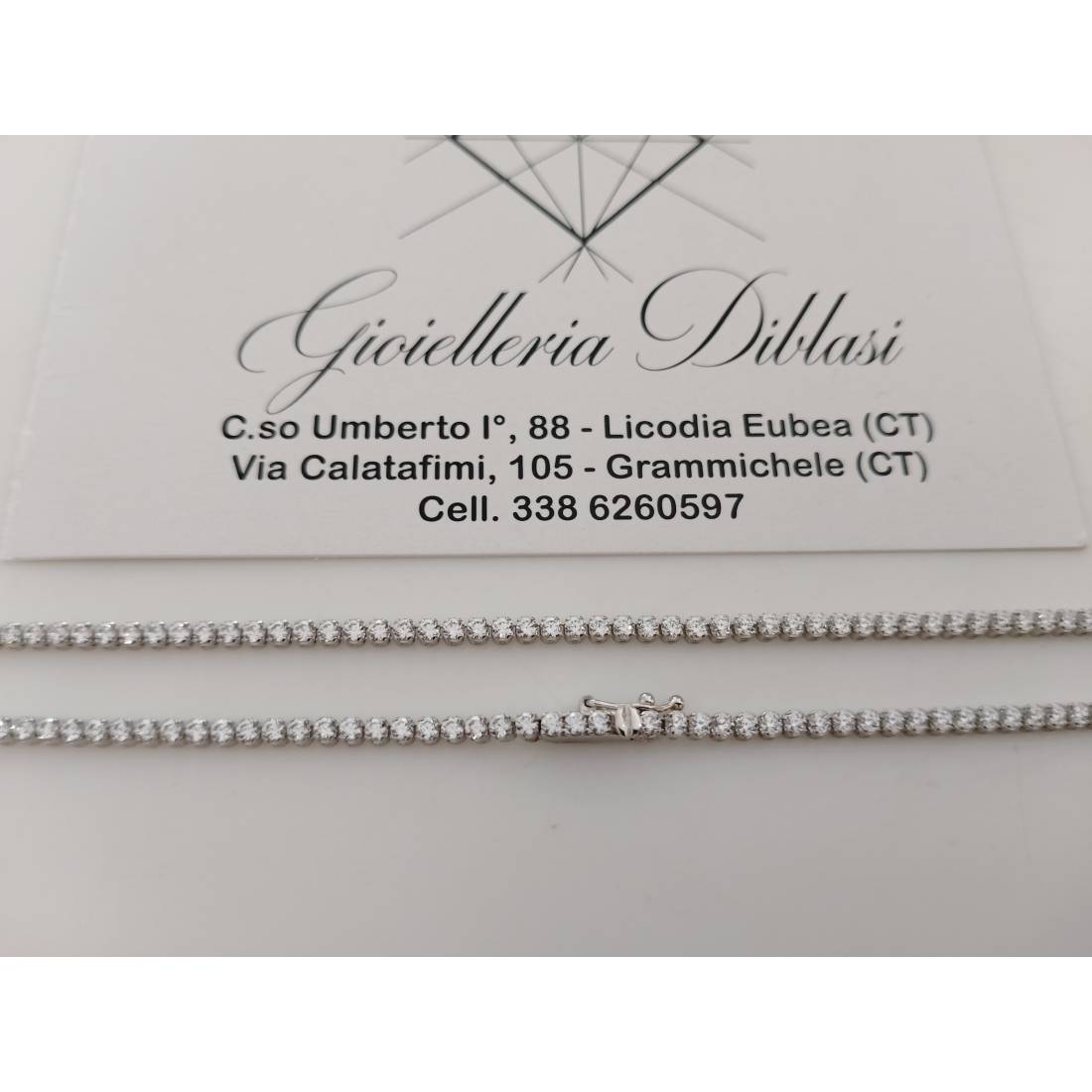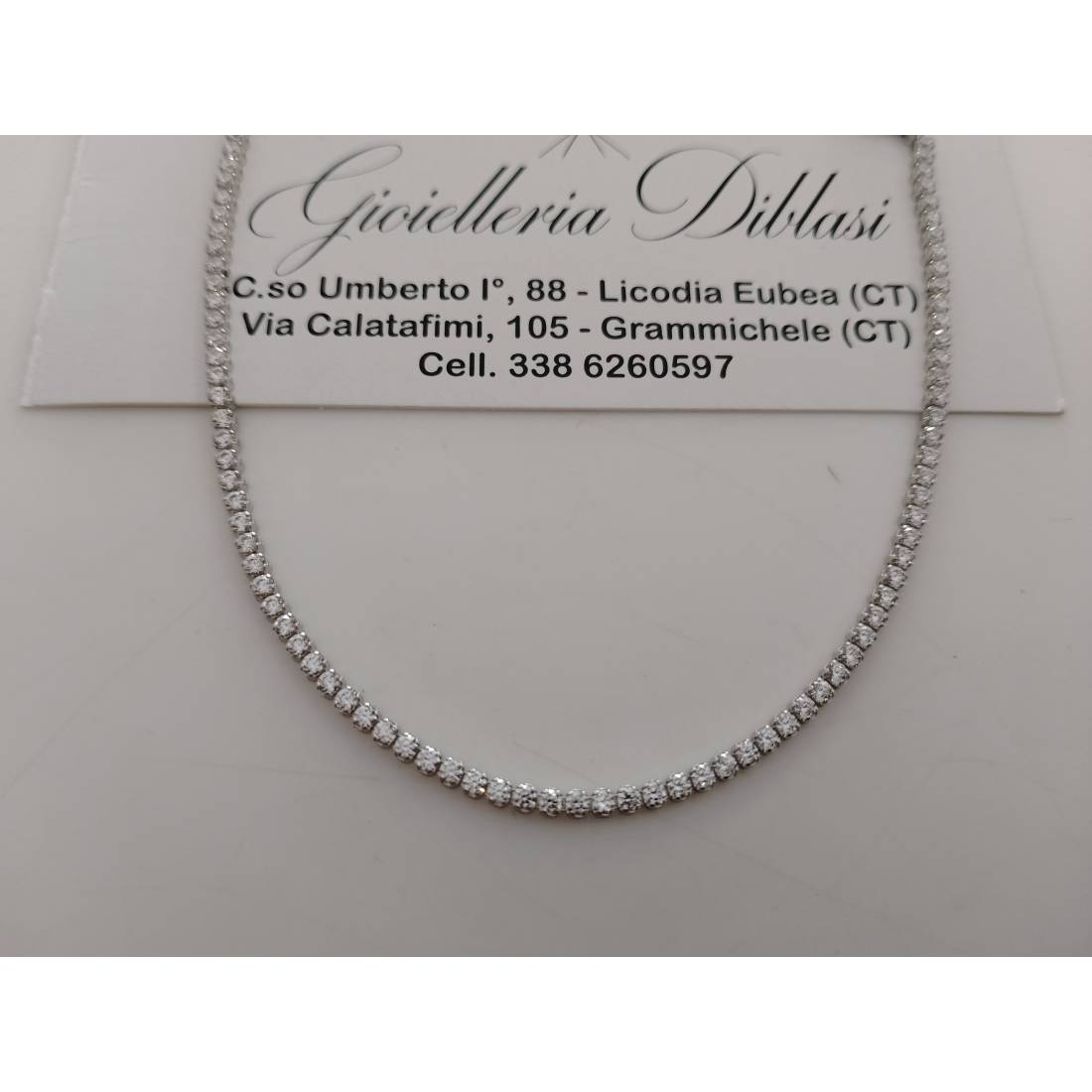 COLLANA Donna ORO BIANCO 18 Karati 750/1000 TENNIS Con Zaffiri Bianchi Girocollo