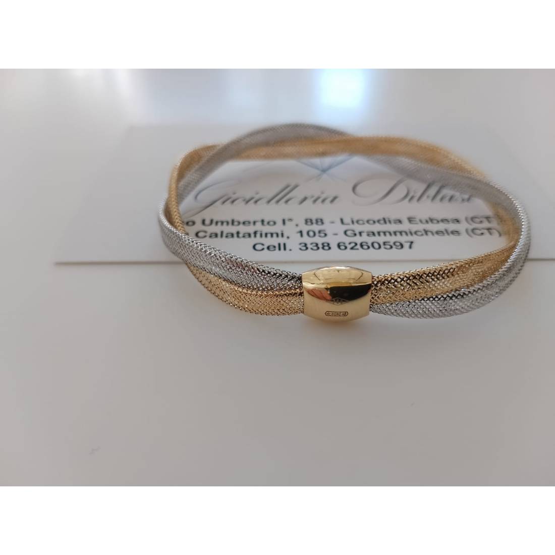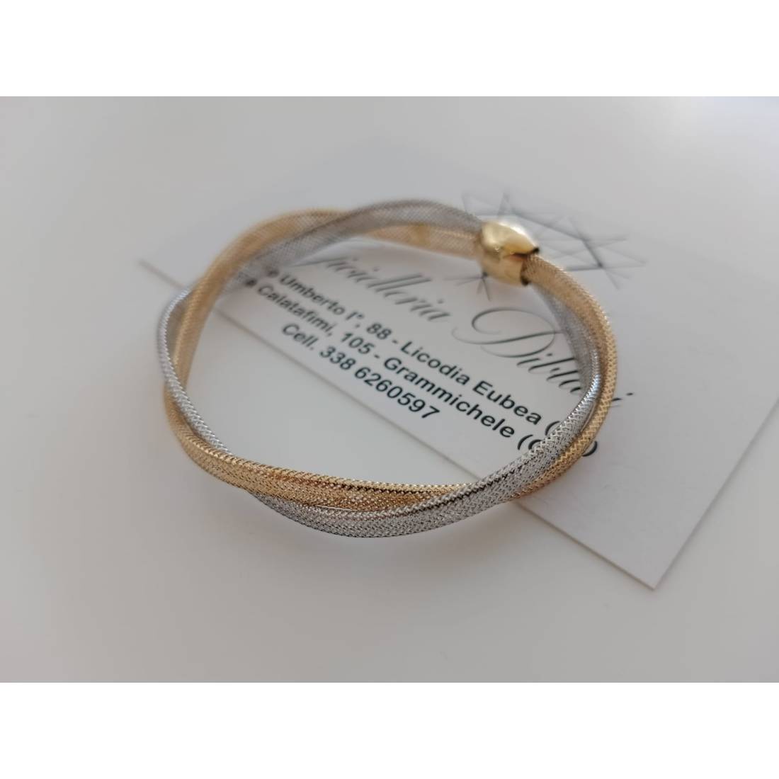 BRACCIALE Donna In ORO Bicolore GIALLO E BIANCO 18 Karati 750% Maglia Elastica