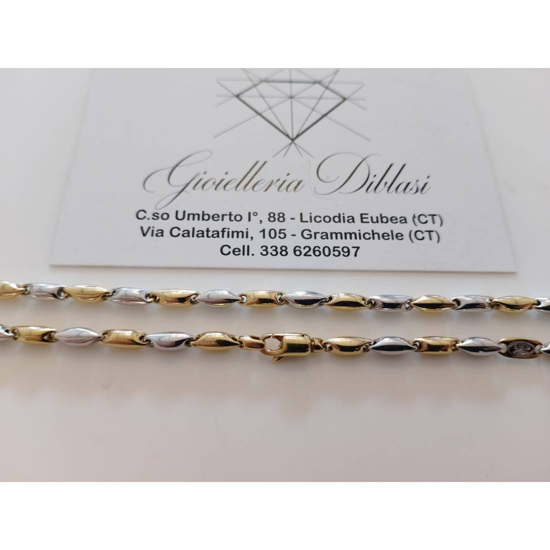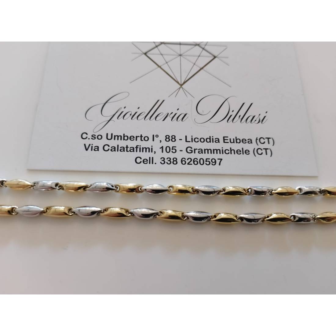 COLLANA ORO Bicolore GIALLO BIANCO 18 Kt 750% Unisex Maglia Tubolare Alternata