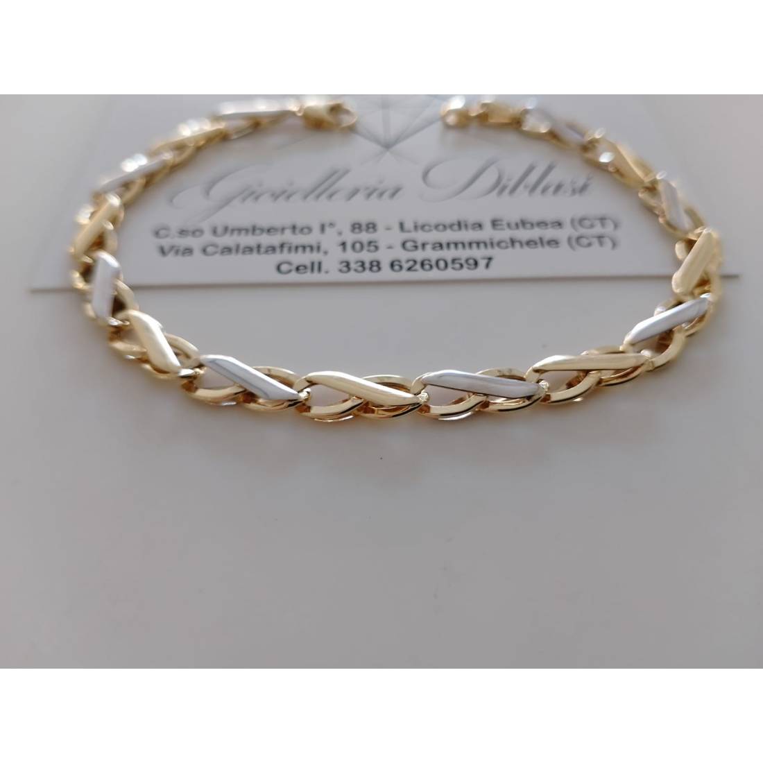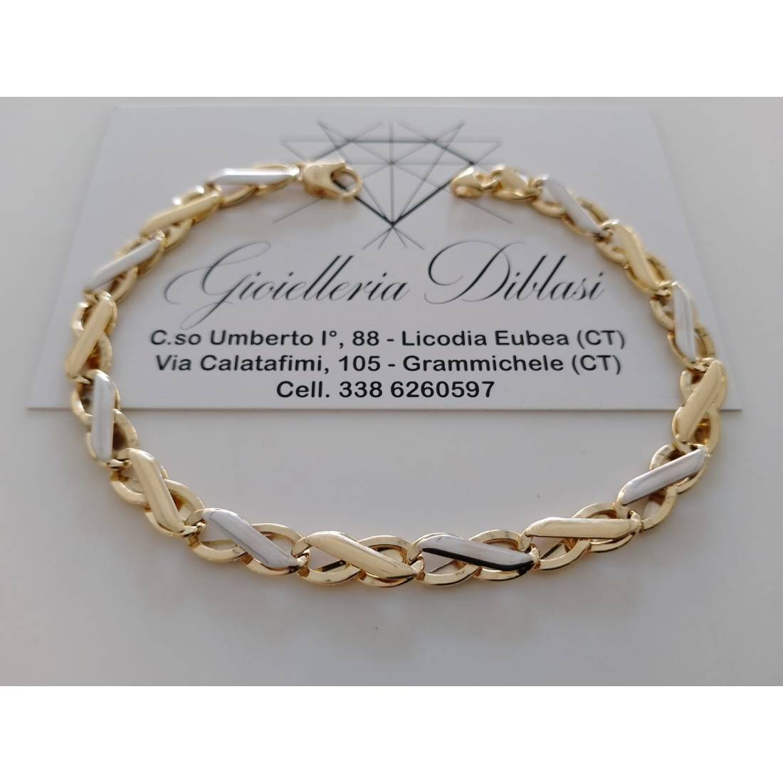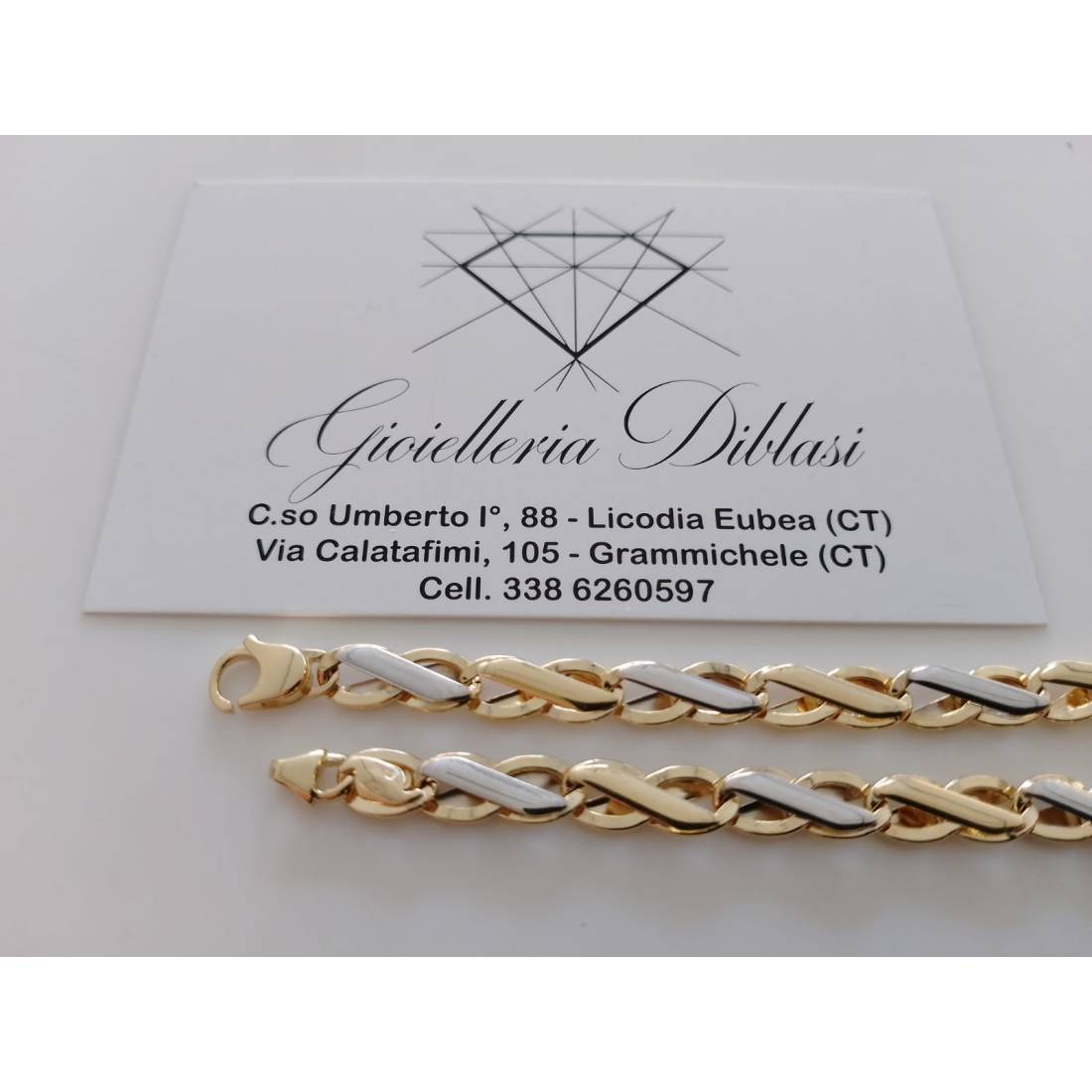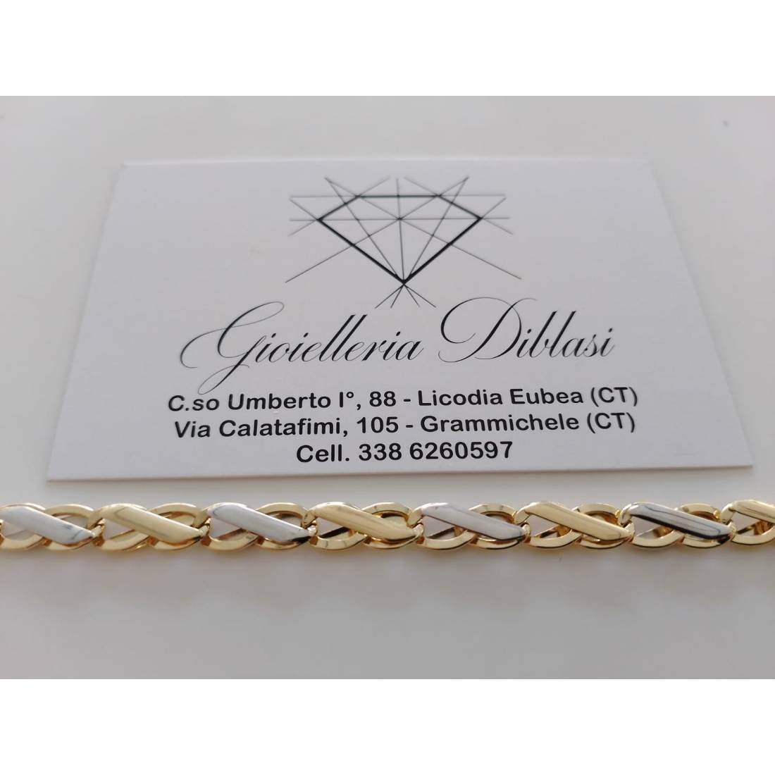 BRACCIALE Bicolore Maglia Alternata Uomo Donna ORO GIALLO BIANCO 18 Karati 750%