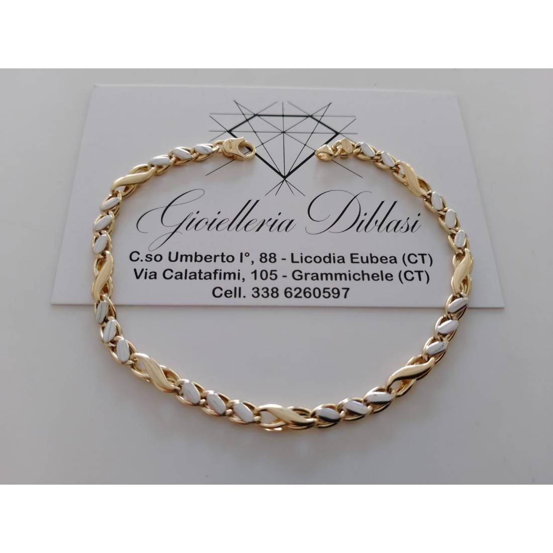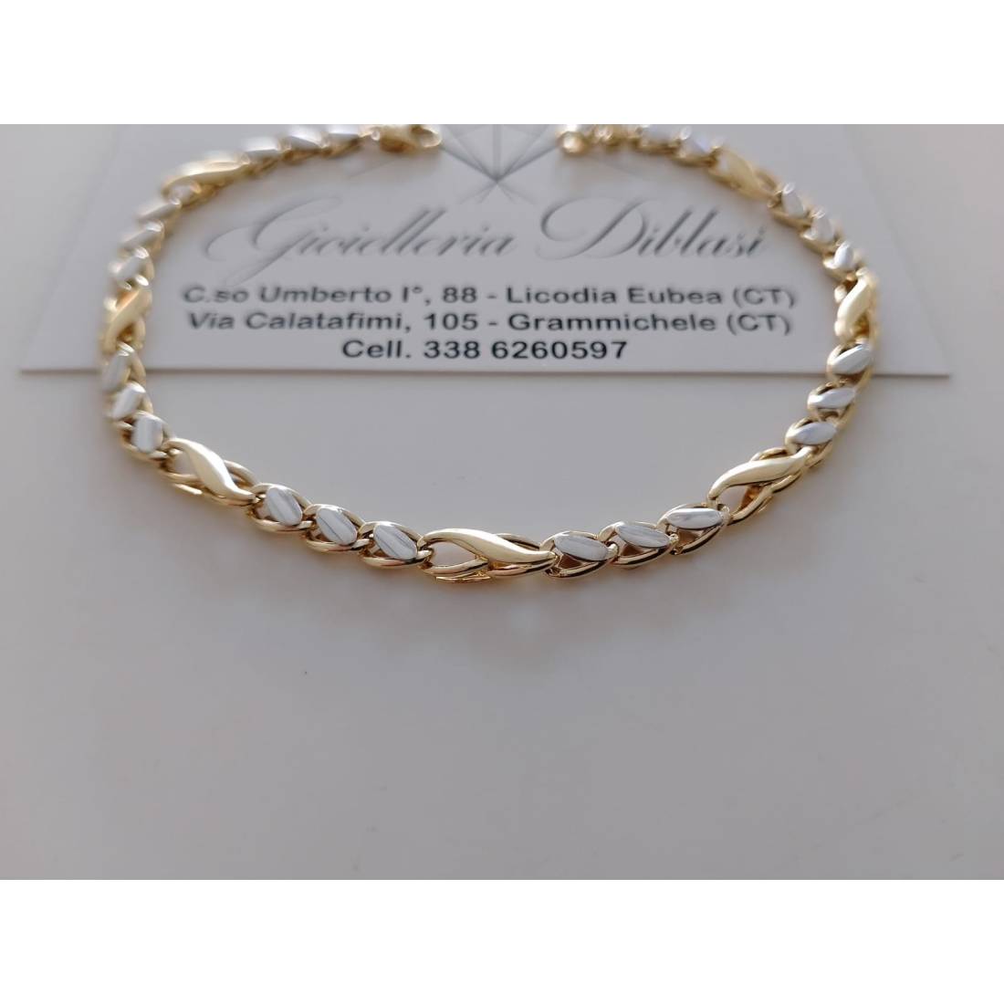 BRACCIALE ORO Maglia Bicolore GIALLO BIANCO 18 Karati 750/1000 Uomo Donna Unisex