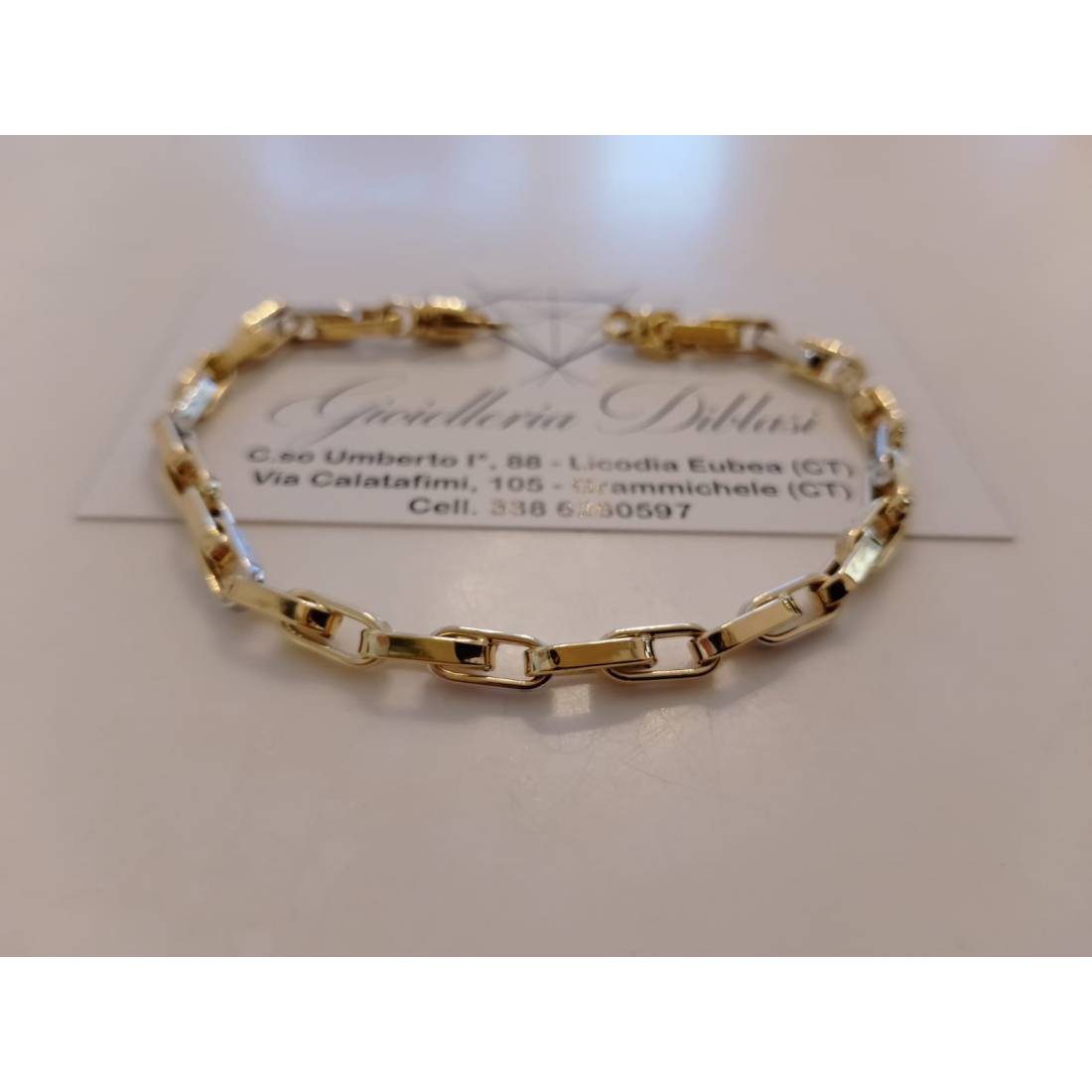 BRACCIALE ORO 18 Karati 750% Uomo Donna Bicolore GIALLO BIANCO Catena Alternata