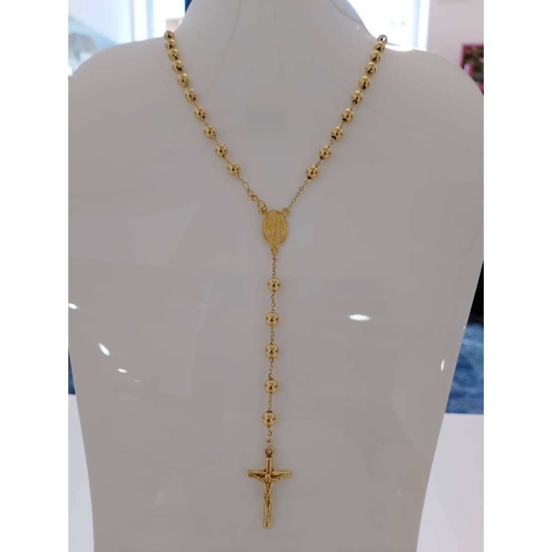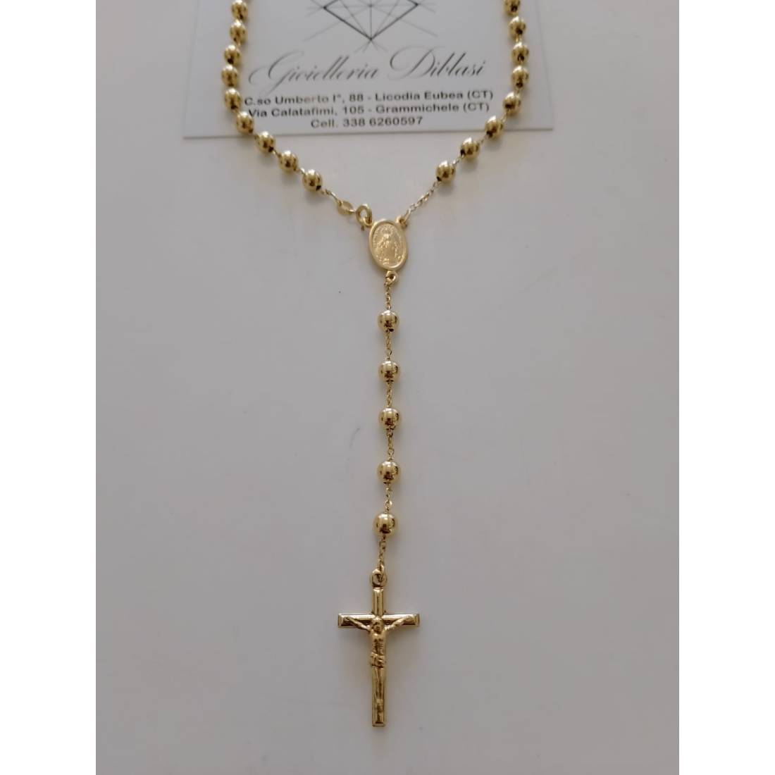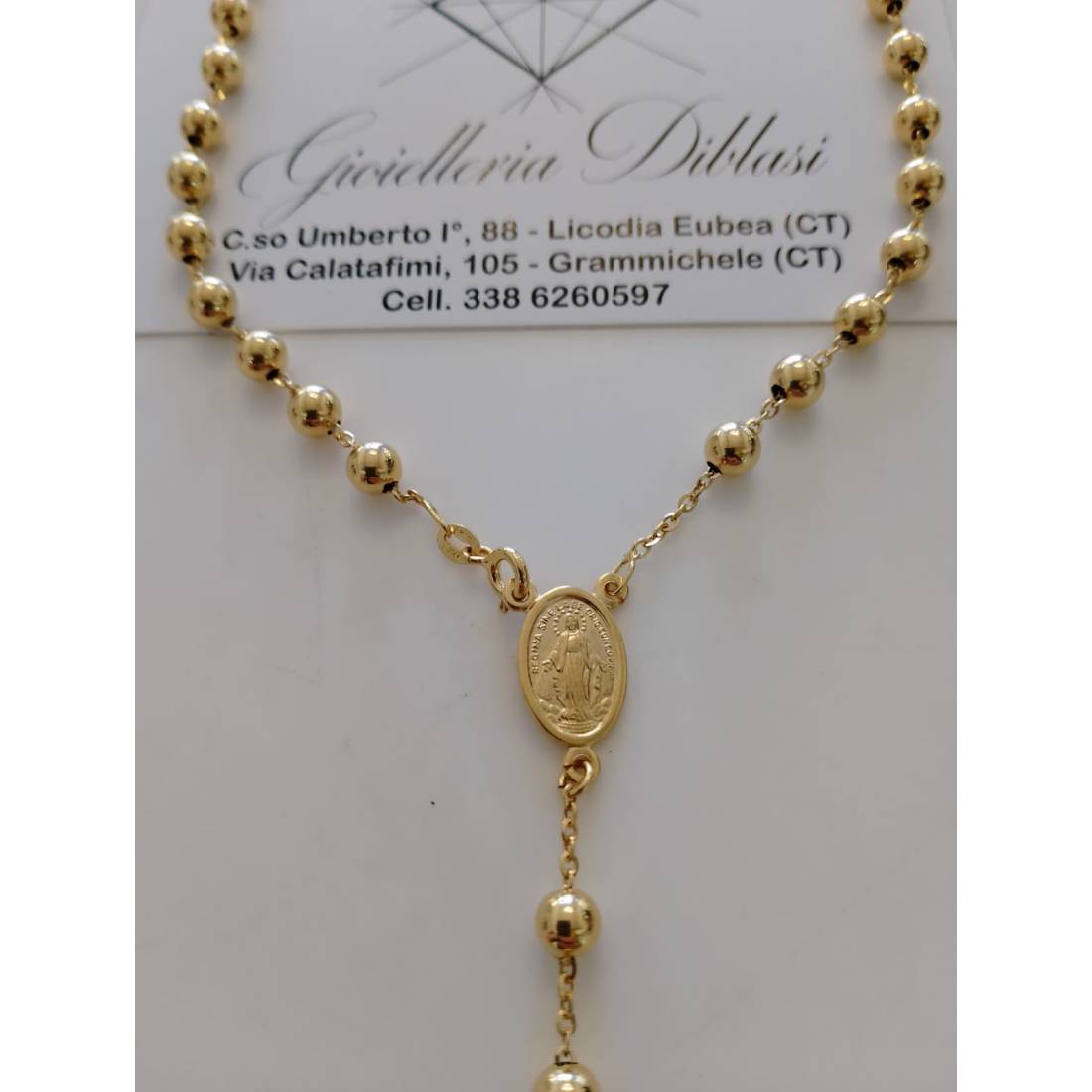 COLLANA ROSARIO ORO GIALLO 18 Karati Uomo Donna Sfere MEDAGLIA MIRACOLOSA CROCE