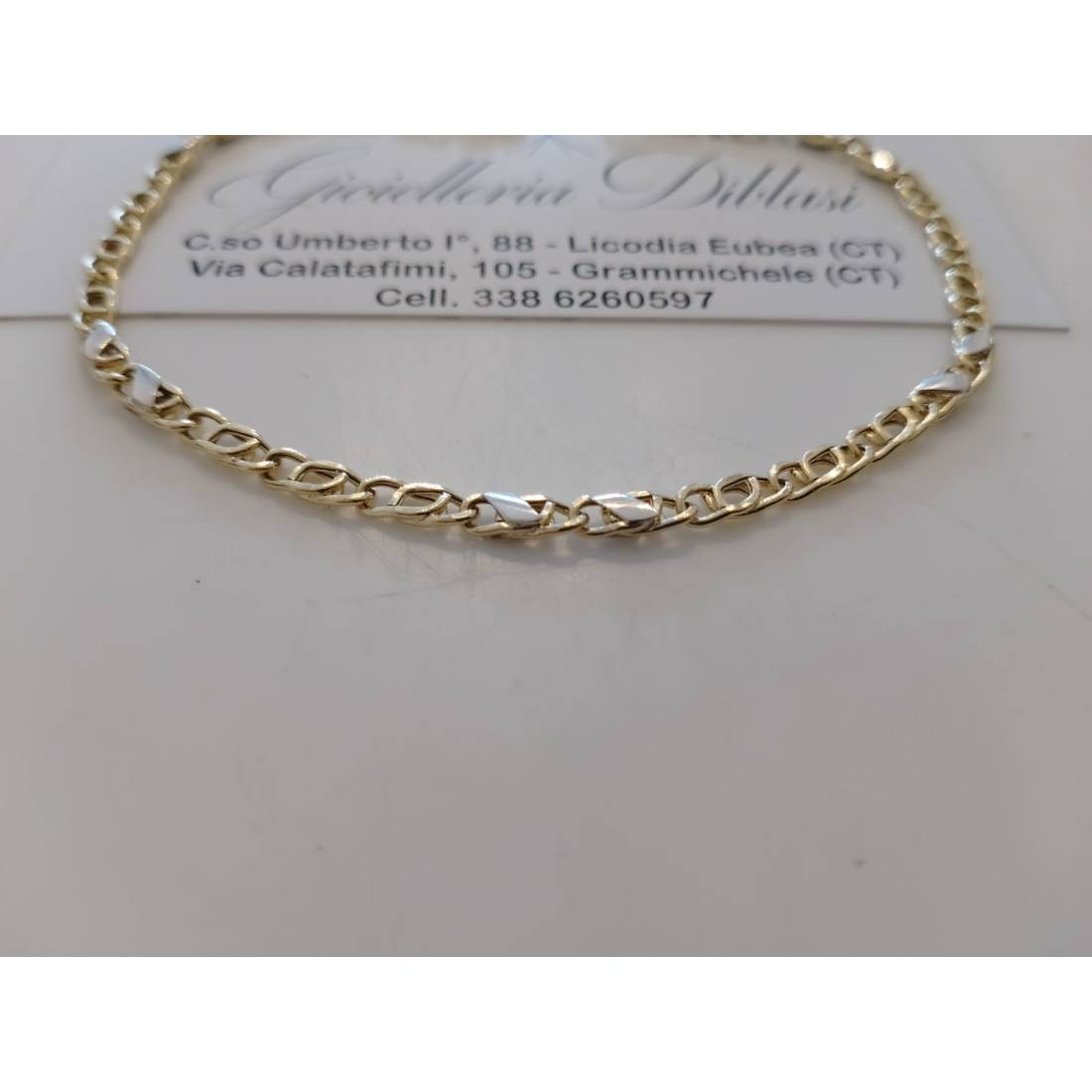 BRACCIALE ORO 18 Kt 750% Uomo Donna Unisex Bicolore GIALLO BIANCO Maglia Catena