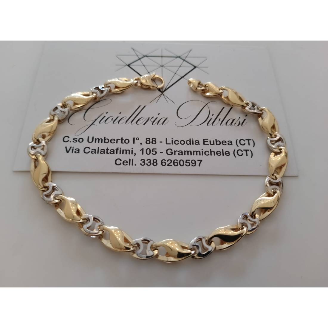 BRACCIALE ORO 18 Karati 750/1000 Uomo Donna Bicolore GIALLO E BIANCO Maglia