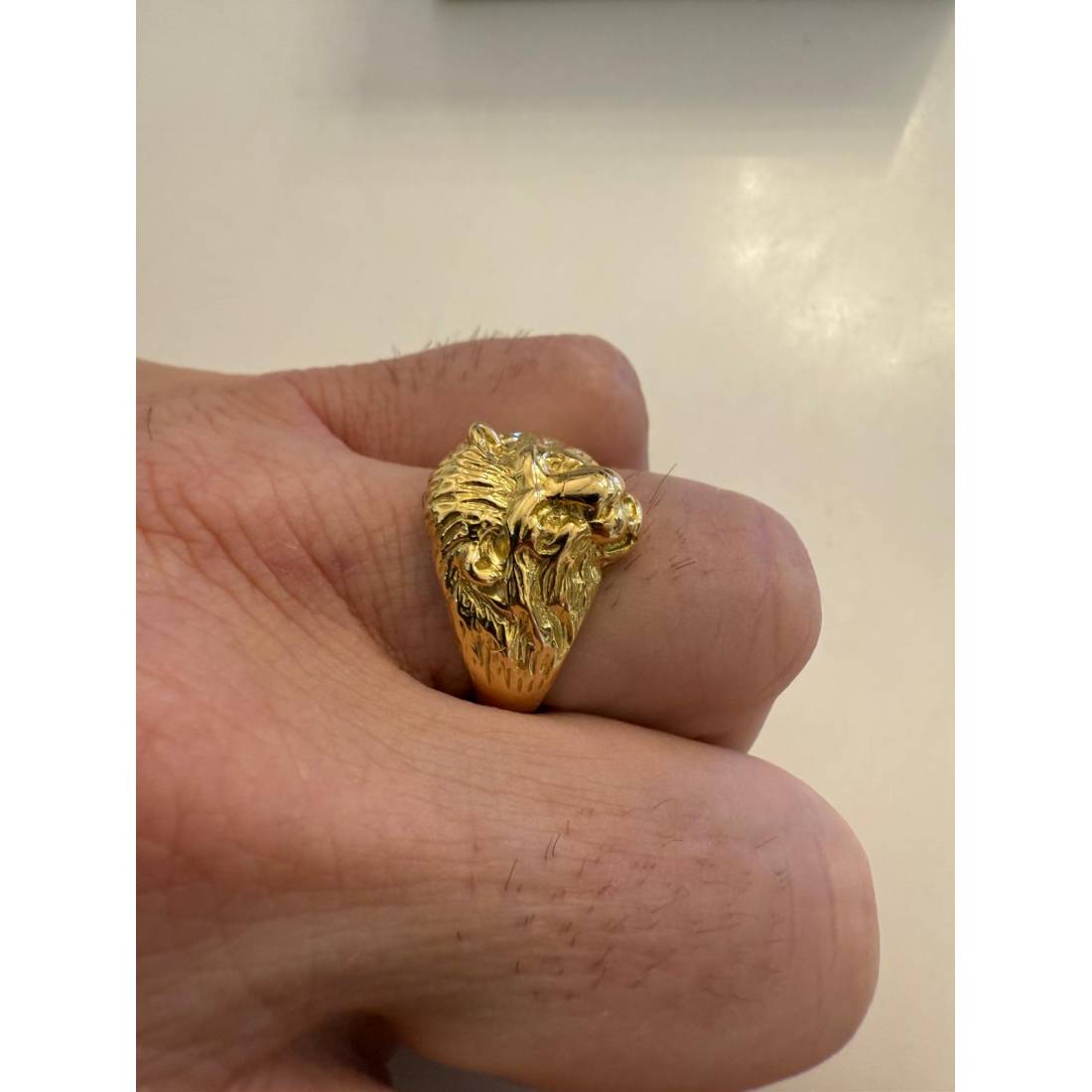 ANELLO Da Uomo In ORO GIALLO 18 KARATI 750% Modello Con TESTA DI LEONE Lucido