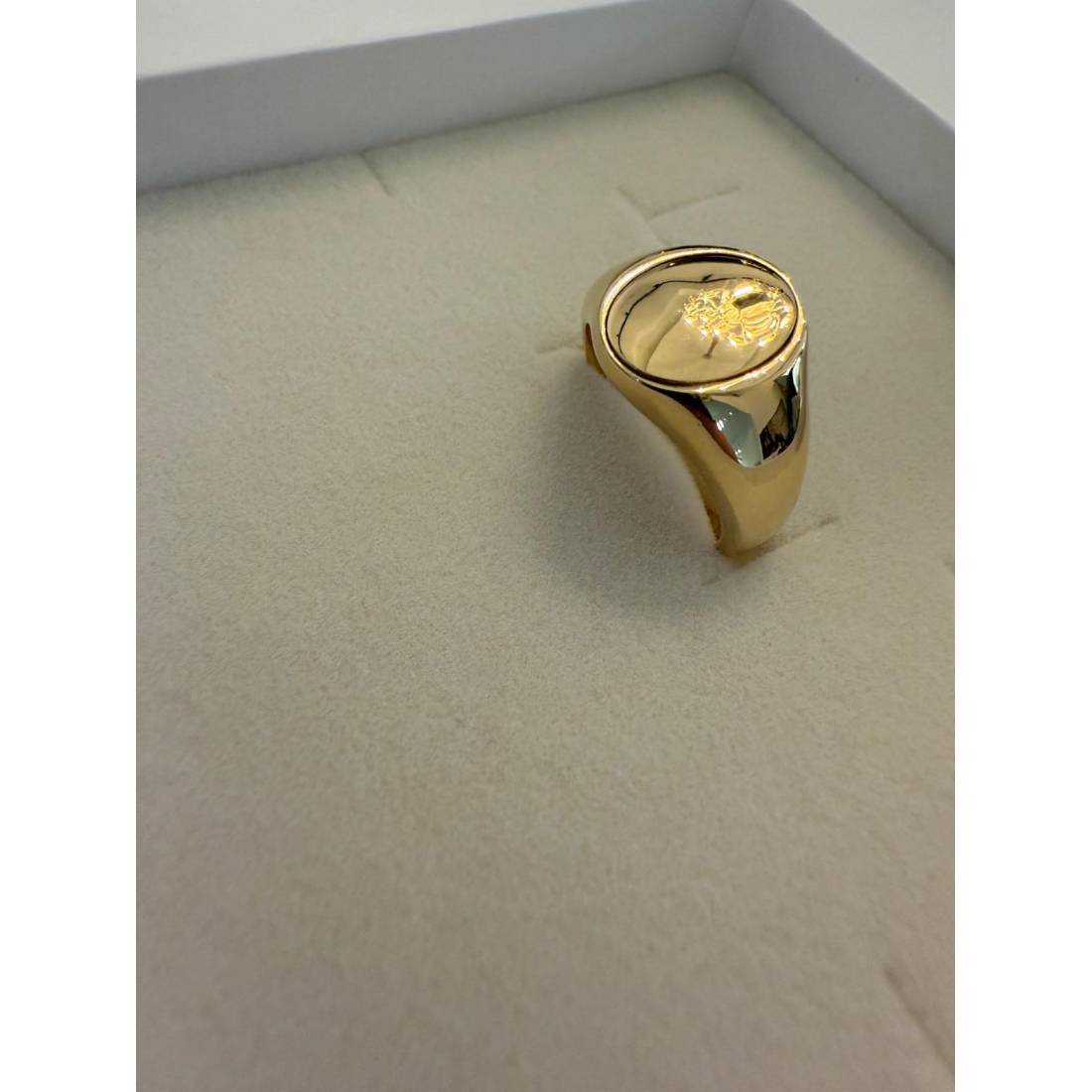 ANELLO Da UOMO In ORO GIALLO 18 KARATI 750% Con CENTRALE OVALE LUCIDO E Piatto