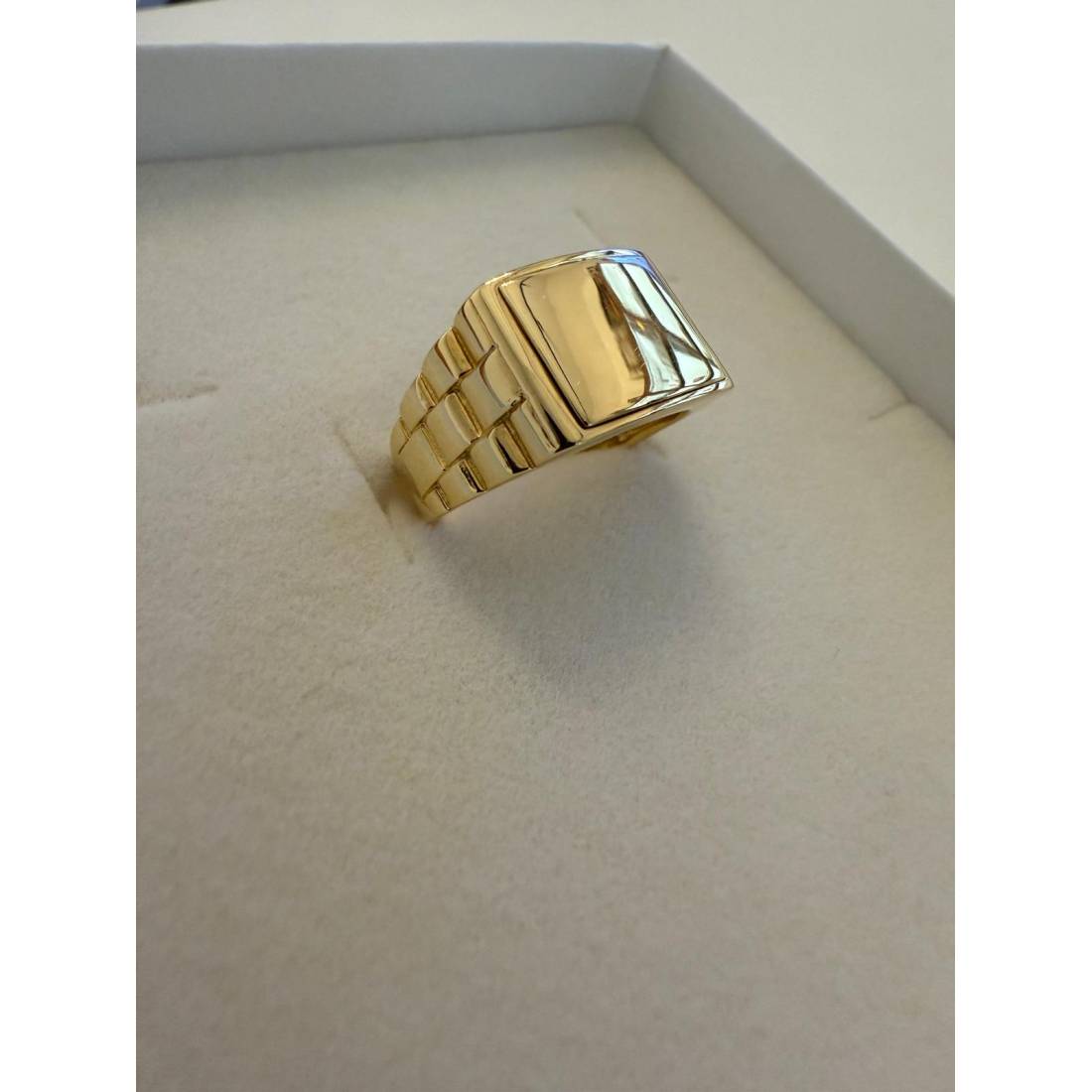 ANELLO UOMO ORO GIALLO 18 KARATI 750% Con CENTRALE QUADRATO LUCIDO Liscio Piatto