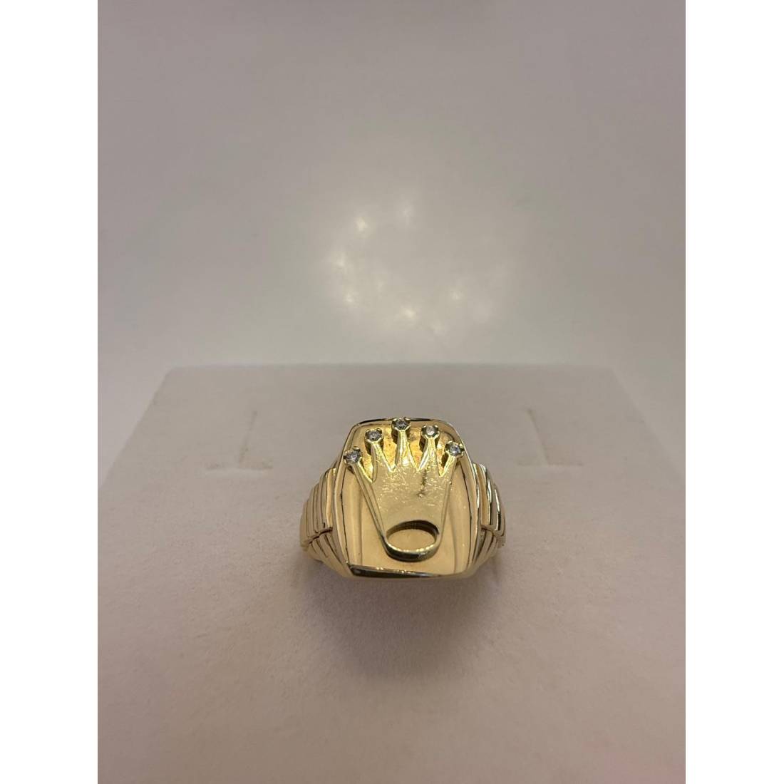 ANELLO Da Uomo ORO GIALLO 18 KARATI 750% Con LOGO CORONA ROLEX E Zirconi Bianchi