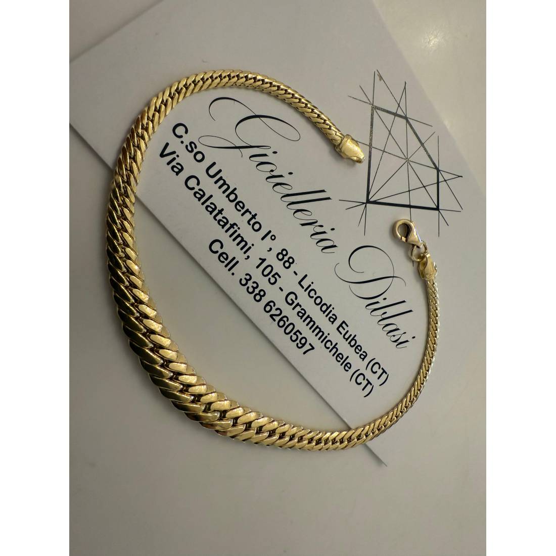 BRACCIALE ORO GIALLO 18 Karati 750% Donna Maglia Catena SERPENTINA Piatta Lucida