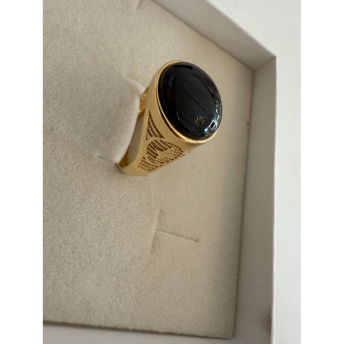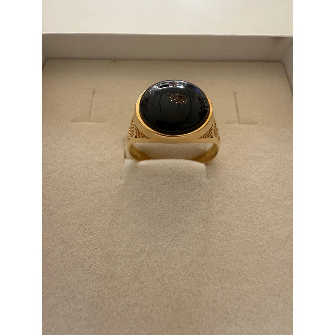 ANELLO Da Uomo In ORO 18 Karati 750% GIALLO Lucido Con Pietra ONICE NERA Rotonda