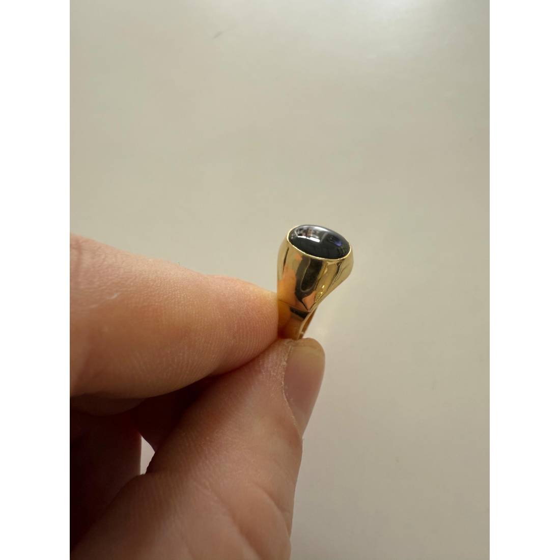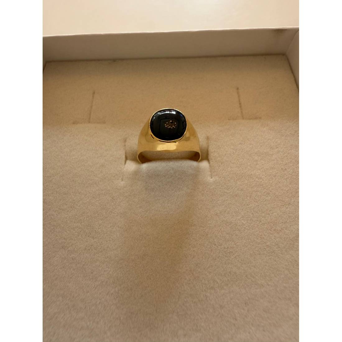 ANELLO Da Uomo In ORO 18 Karati 750% GIALLO Lucido Con Pietra ONICE NERA Ovale