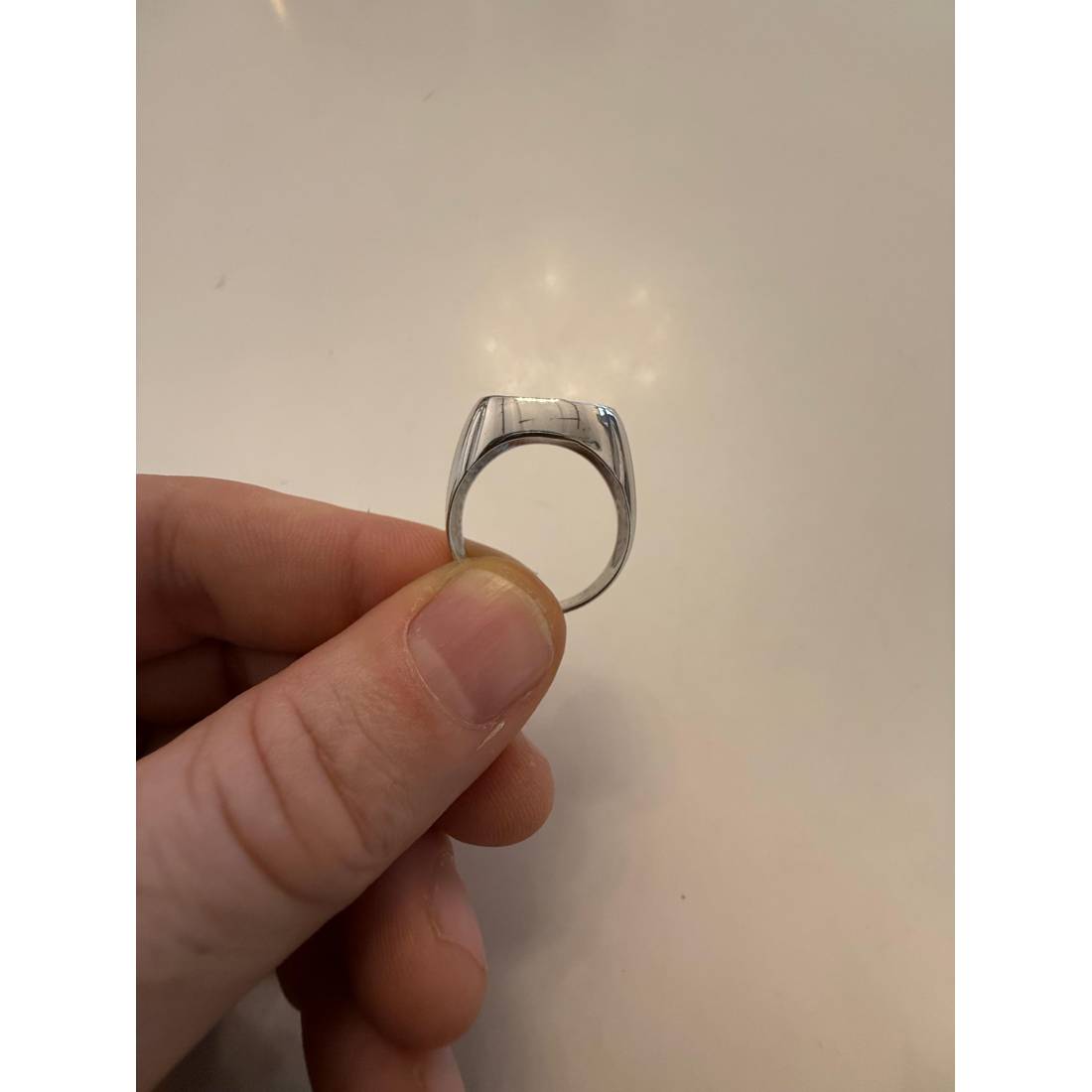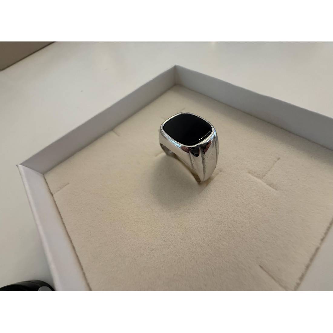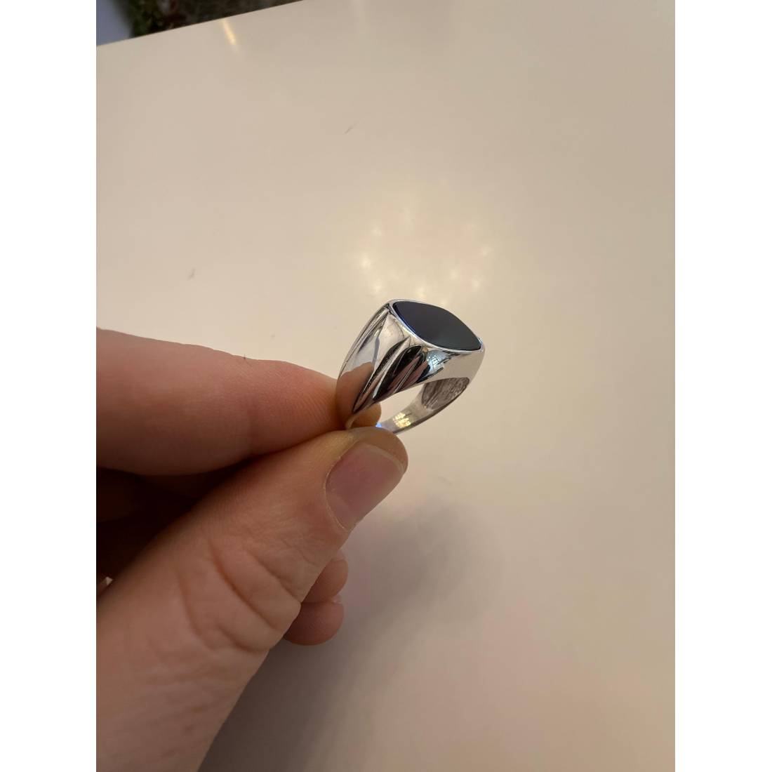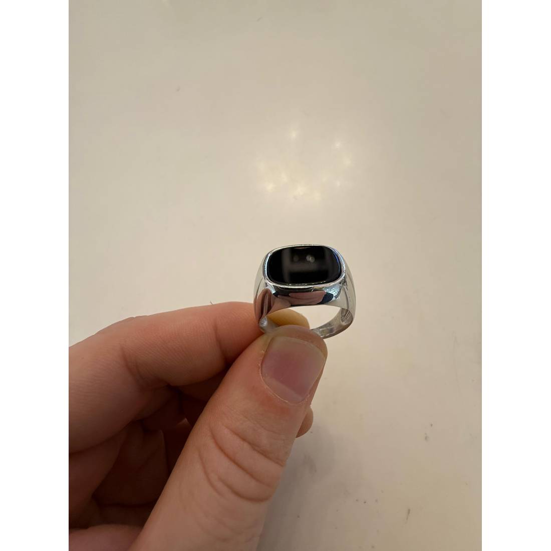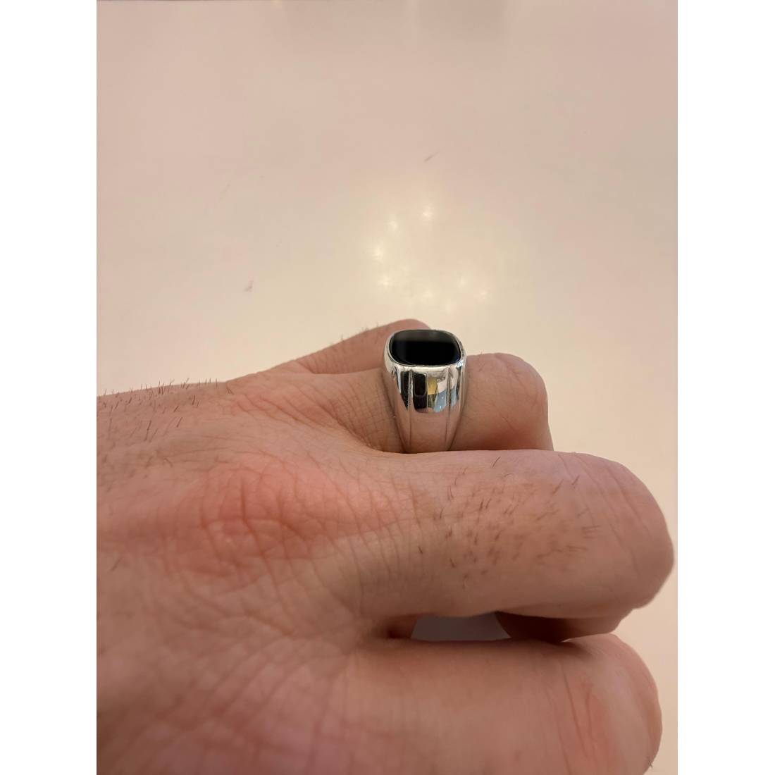 ANELLO Da Uomo In ORO 18 Karati 750% BIANCO Lucido Con Pietra ONICE NERA Lucida