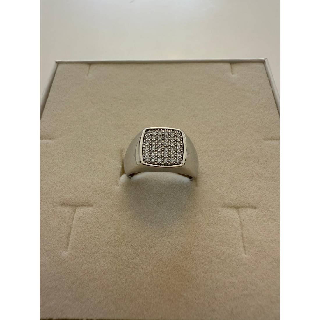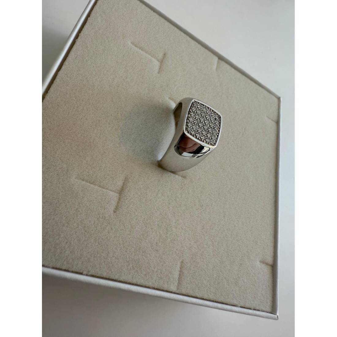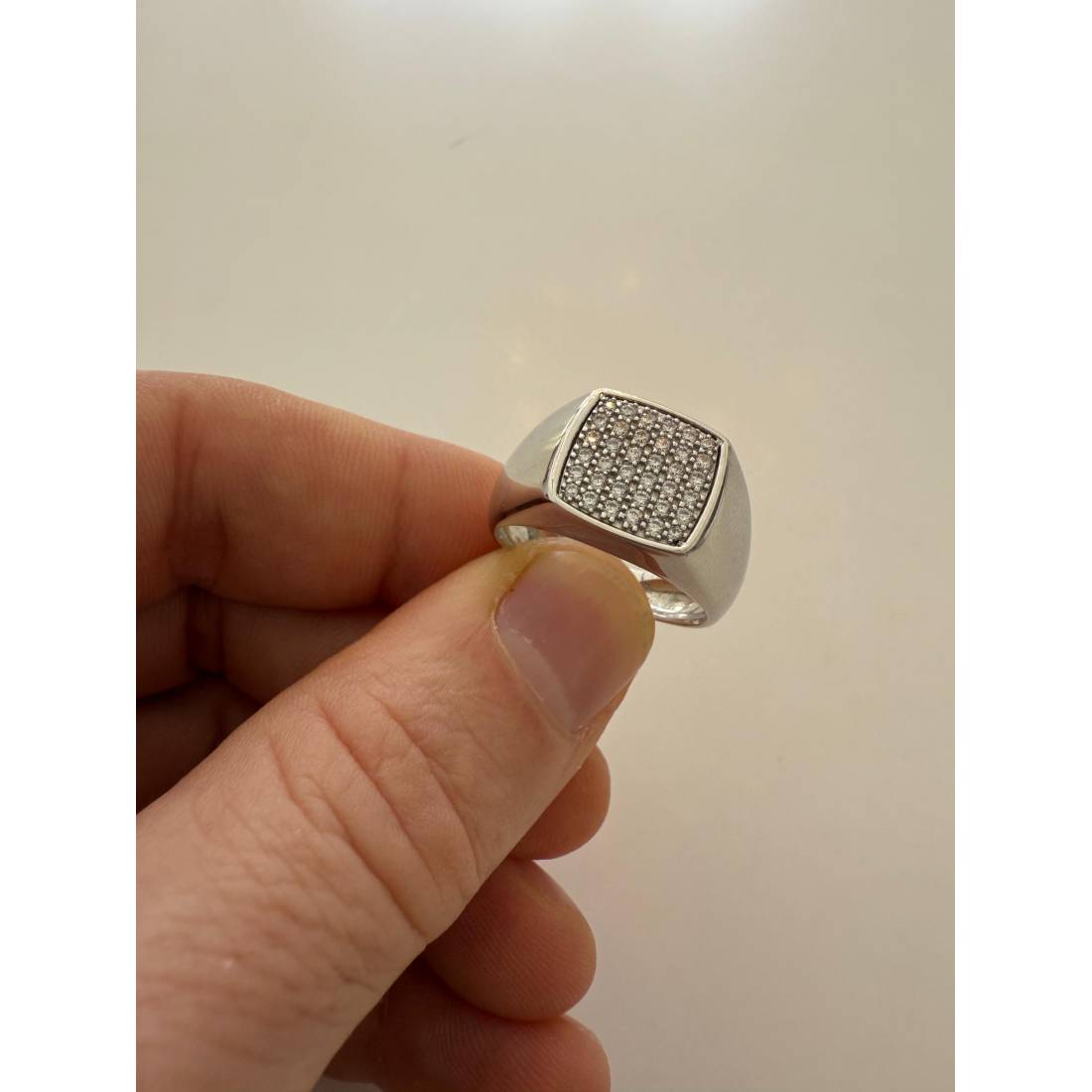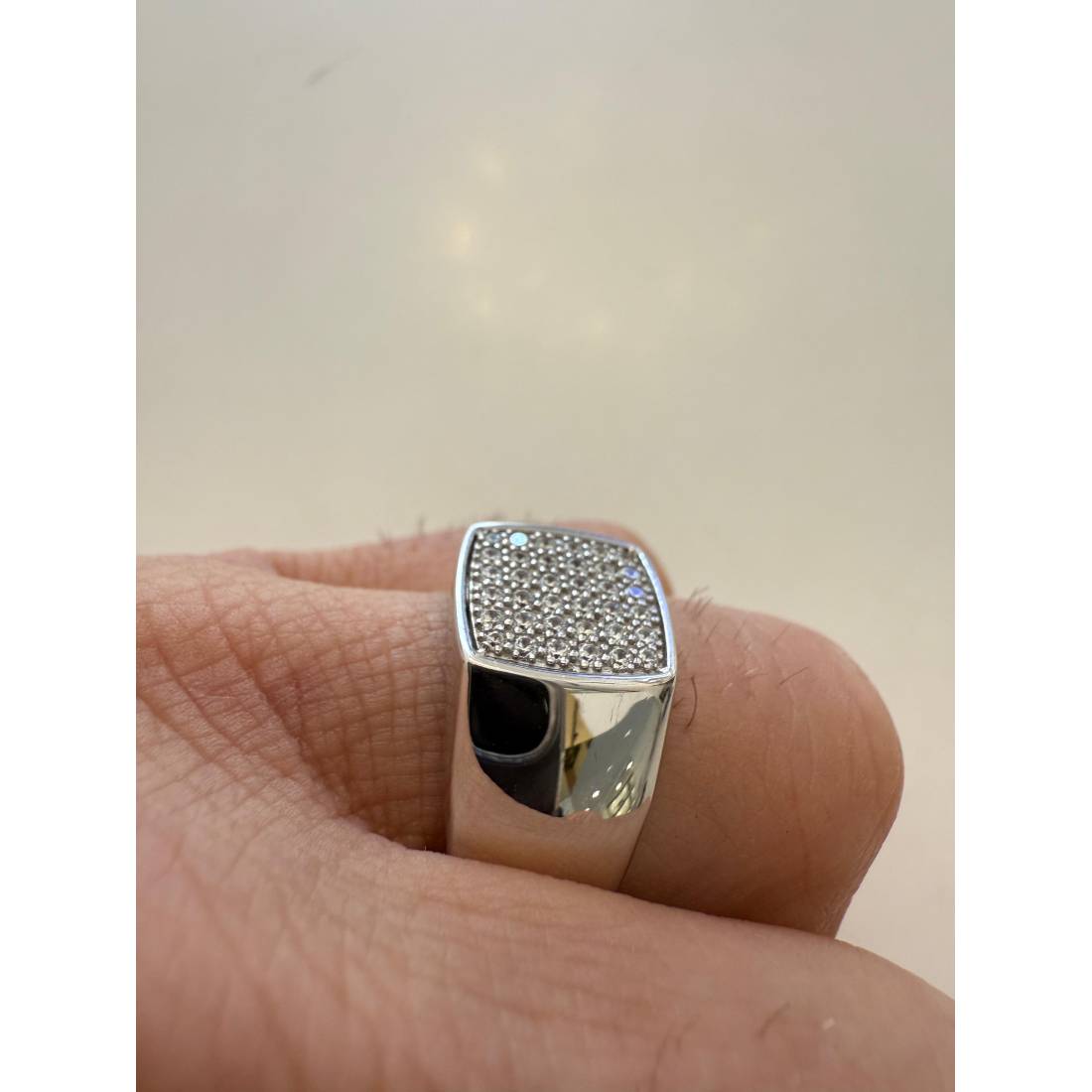 ANELLO Da Uomo Squadrato In ORO 18 Karati 750% BIANCO Lucido Con Zirconi Bianchi