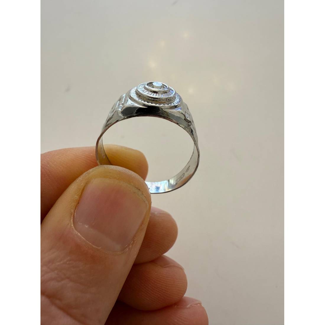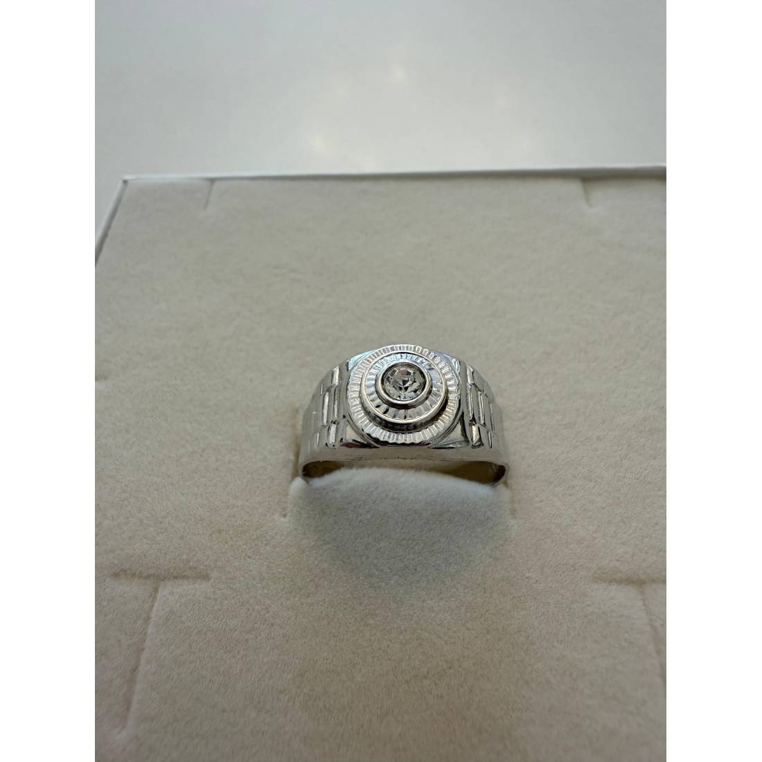 ANELLO Da Uomo In ORO 18 Karati 750% BIANCO Lucido E Lavorato Con Zircone Bianco