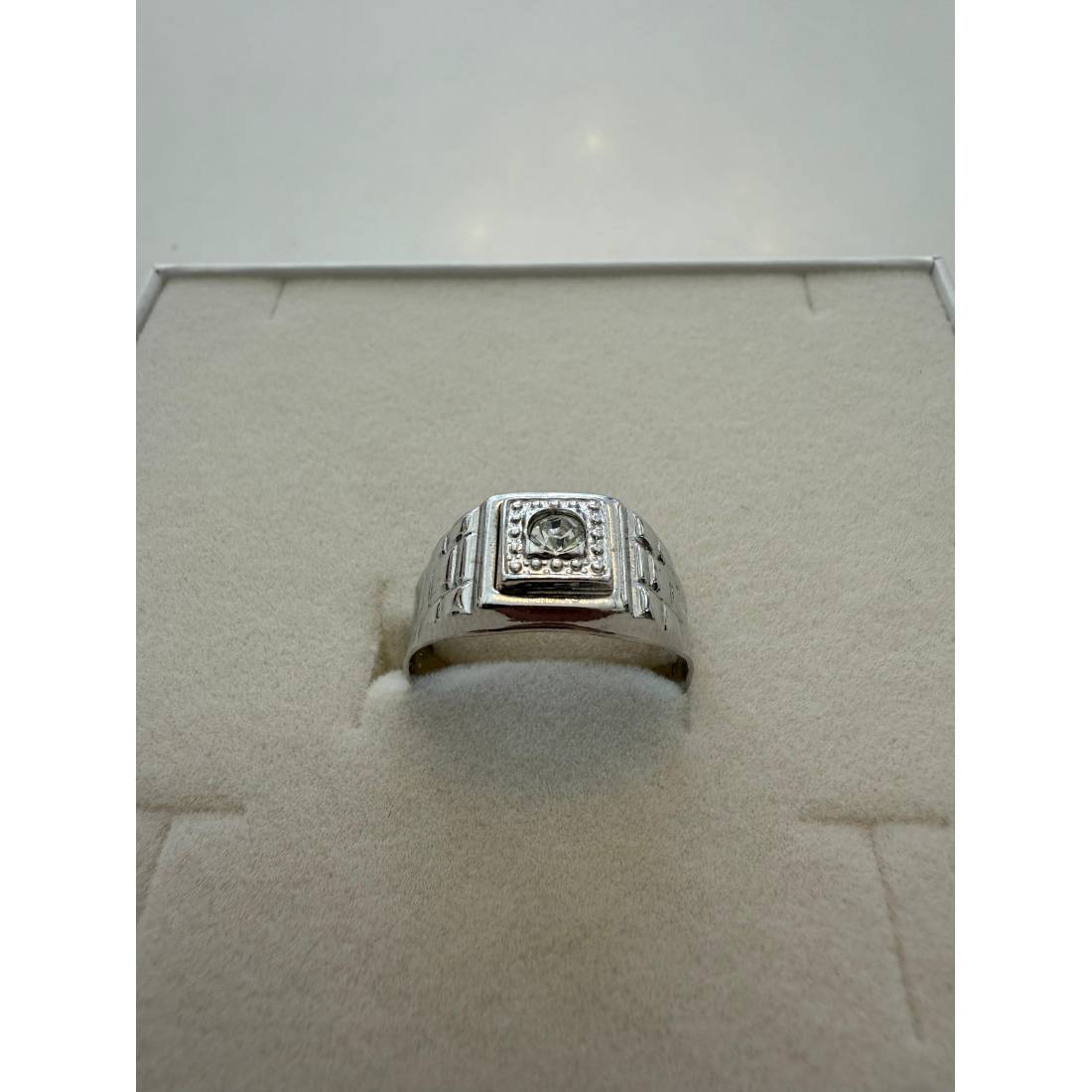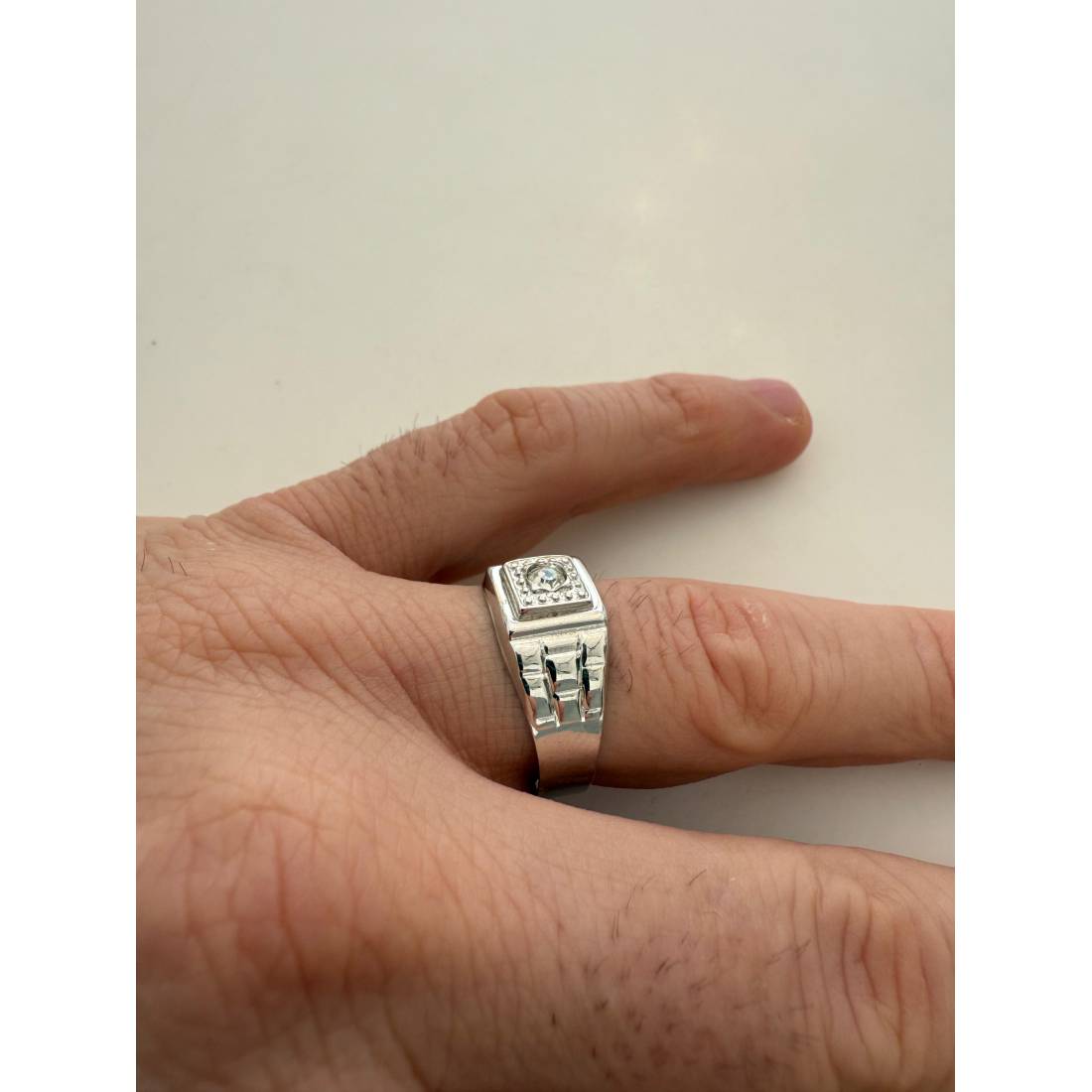 ANELLO Da Uomo Squadrato ORO BIANCO 18 Karati 750% Lavorato Con Zircone Bianco