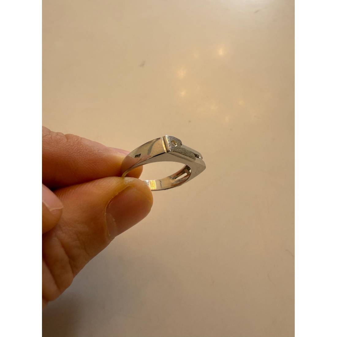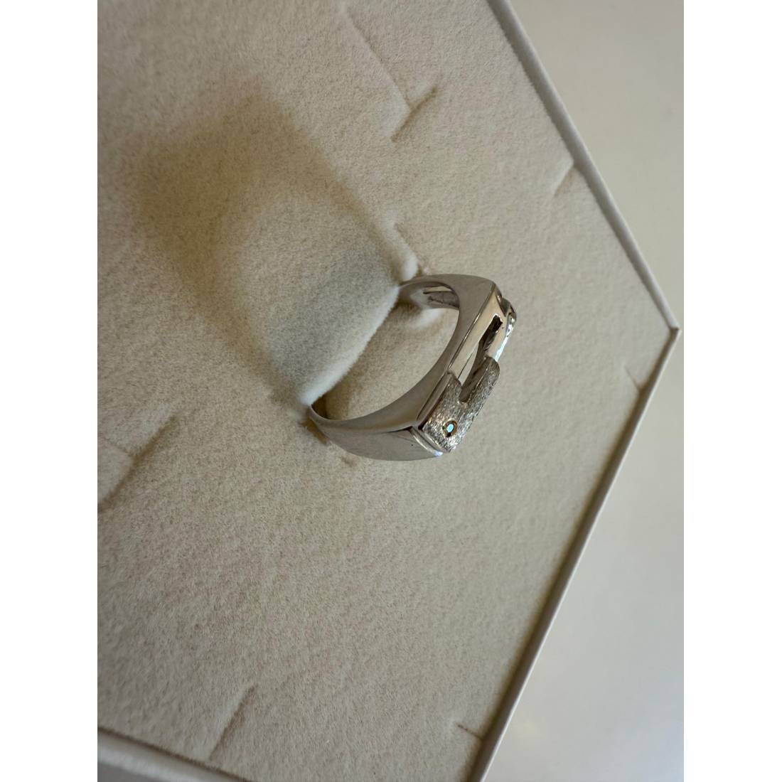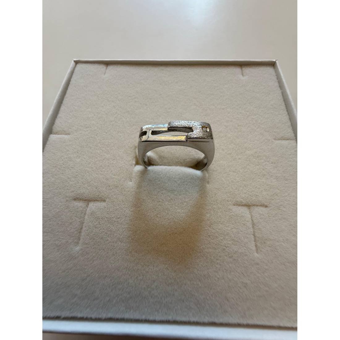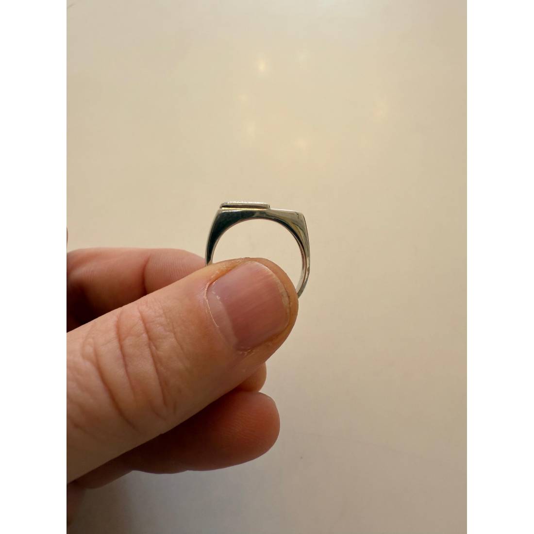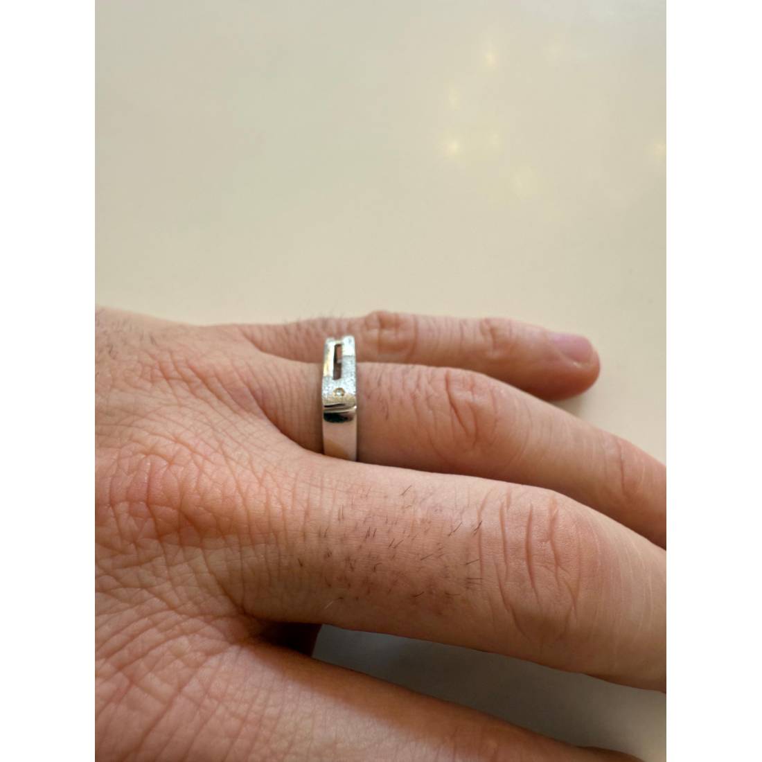 ANELLO Da Uomo In ORO BIANCO 18 Karati 750% Lucido E Lavorato Con Zircone Tondo