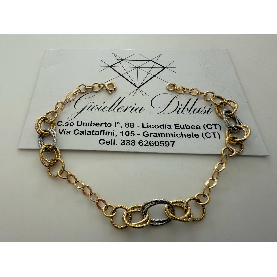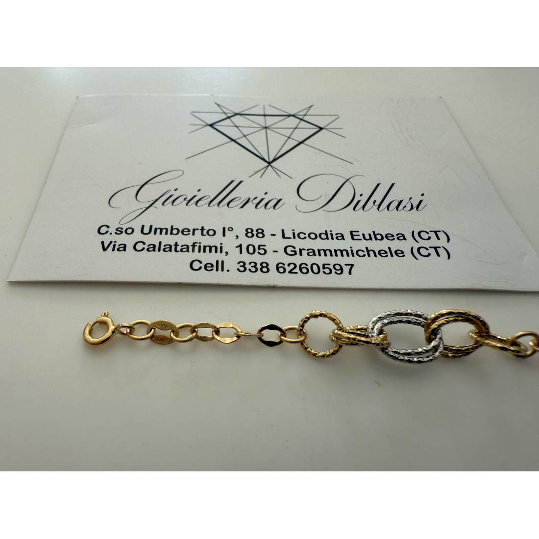 BRACCIALE ORO 18 Kt 750% Donna Bicolore GIALLO BIANCO Maglia A Catena Con Ovali