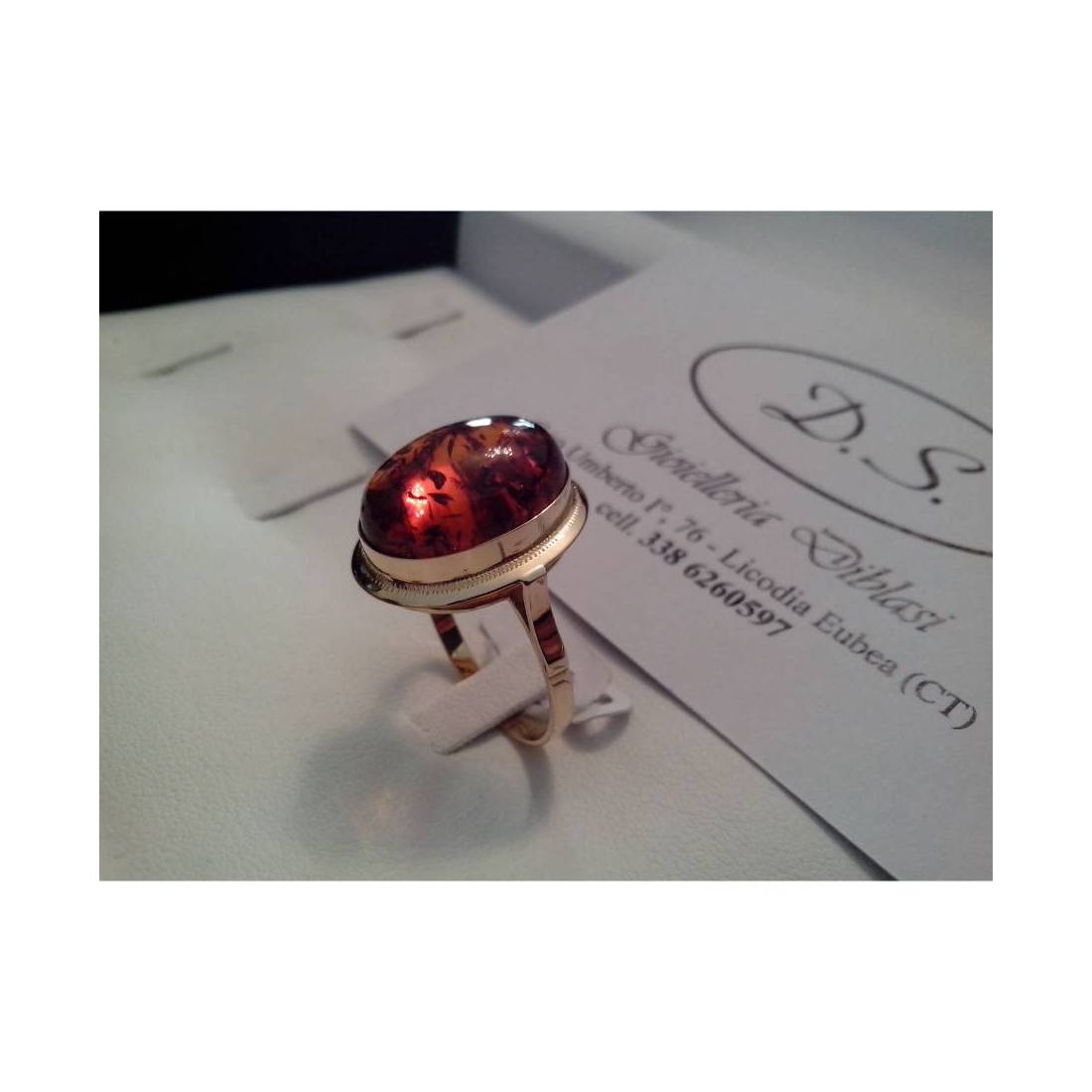 ANELLO IN ORO GIALLO E AMBRA